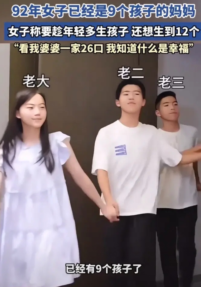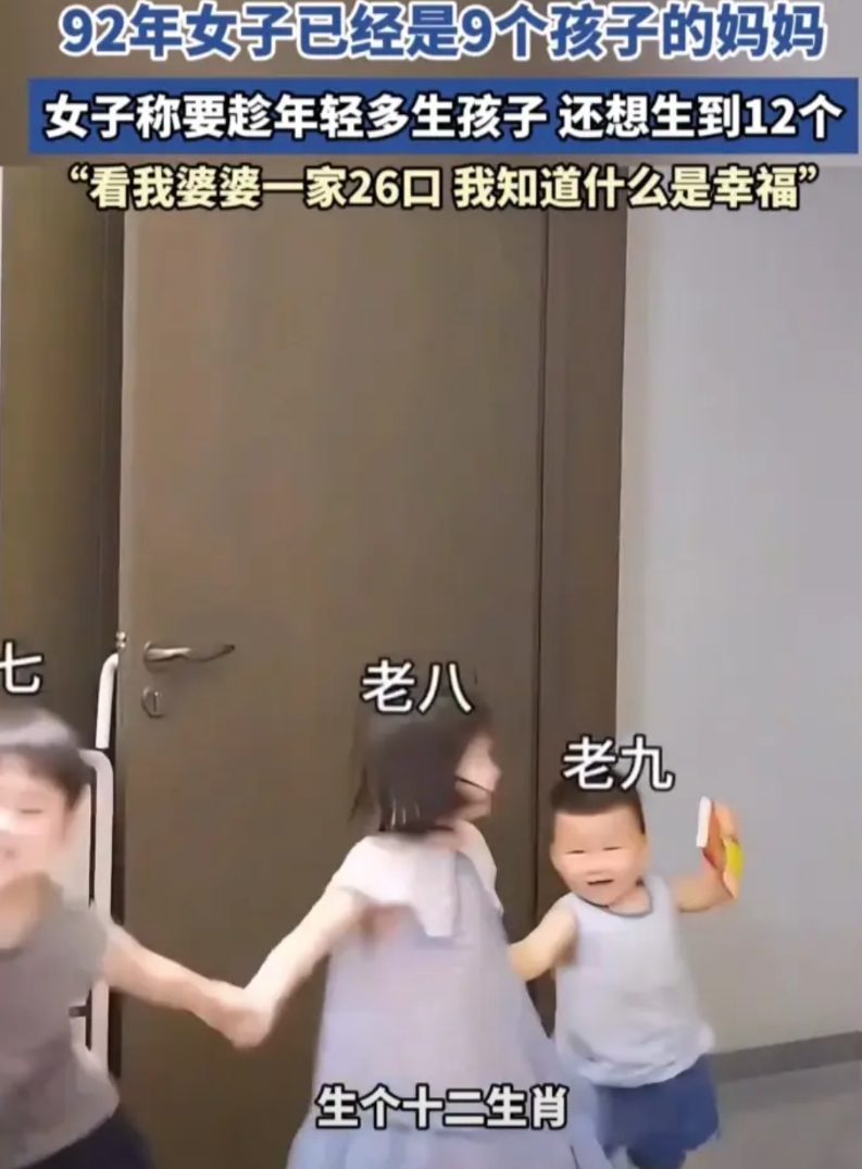 这位9娃宝妈说自己愿意多生,看着婆婆有26个孙子孙女,从她眼里看到了什么是幸福,意思是自己到了婆婆那个岁数,也希望有很多的孙子孙女,所以只要身体允许,她还想继续生,生个十二生肖。
