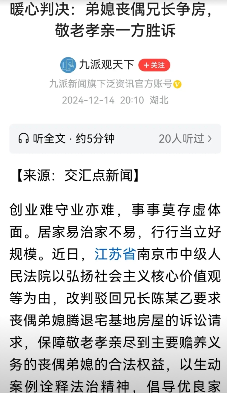江苏南京,男子婚后,妻子跟母亲有婆媳矛盾,妻子竟然回娘家搬救兵,上门把母亲揍了一顿,男子跟母亲决裂,全家搬去了岳父村子,母亲跟三弟一起生活,三弟离世,三弟媳给母亲生养死葬,母亲去世后,男子夫妻一分丧葬费不出,竟然要分亲戚们给的“香纸钱”,被拒后,男子要把三弟媳孤儿寡母赶出房子,说房子是他的。法院判决出乎意料。
