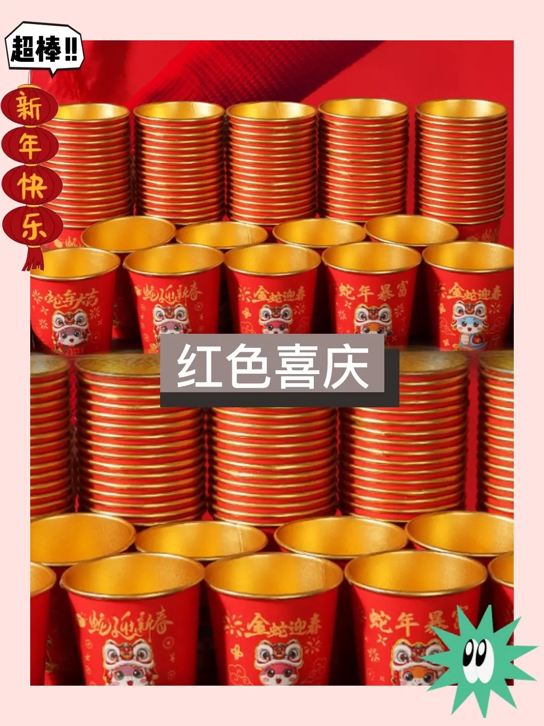 杯子来啦!过年必备😍🎉。这一波喜庆的贺岁气氛,我要推荐给大家的是这款红色纸杯!到手100只的加厚纸杯,用于商用还是家用都非常方便!春节、聚会、朋友小聚,盛满美味饮品之后,一起享受欢乐时光。红色设计不仅让人心情愉悦,更增添了节日的喜庆氛围。而且这个纸杯的质量很不错,不易漏水、轻松承载各种饮品,给你带来安心的用餐体验。快来一起欢庆蛇年,享受团圆的美好时刻吧!