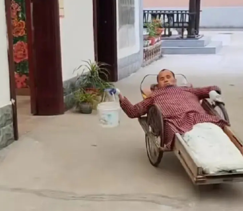 第三,躺着怎么把家里搞的干干净净整整齐齐?通过视频可以看到这位身残志坚的人家庭环境不差,比很多身体健康的人家里搞的都好,这是好事情,但不可能靠他完成。