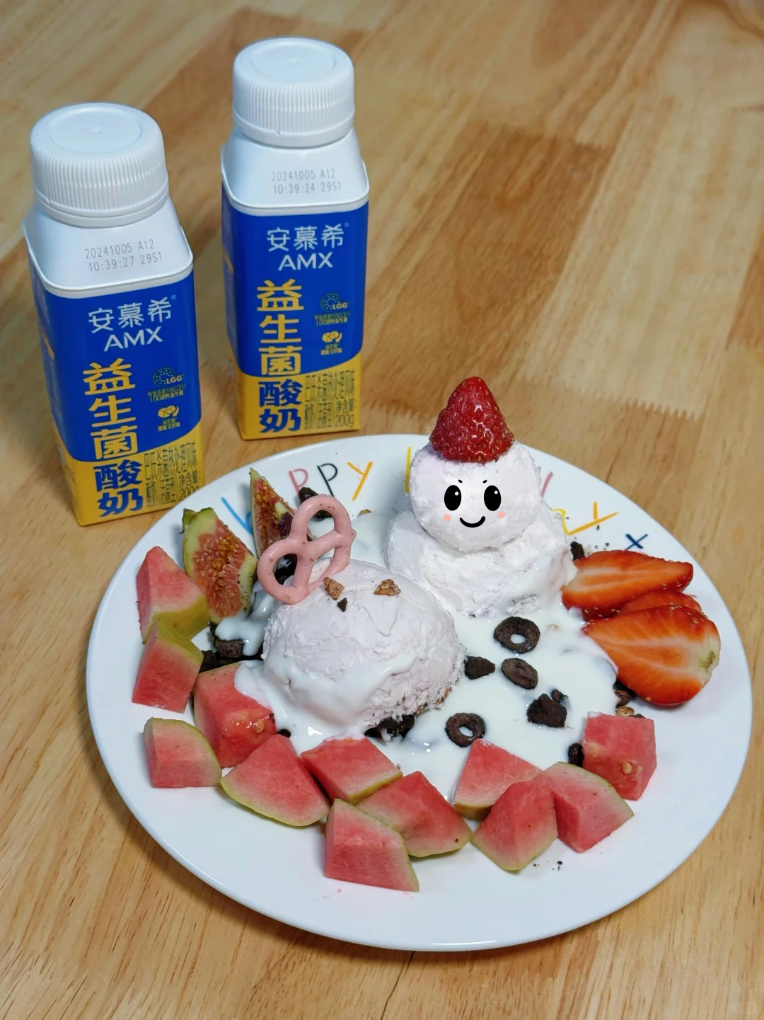 雪花纷飞 冬天真的来啦!天气冷了之后出门进行户外活动更加艰难所以才要从吃饭上多多注意尽量保持体重今天试着制作了一个活力冰雪酸奶碗搭配上圆滚滚的小雪人 添一抹圣诞气息🎄这次制作我选择了安慕希冠益生菌酸奶它是国内首个常温活性益生菌酸奶每瓶都含有10亿活性明星LGG益生菌常温保存 喝的时候不会刺激肠胃