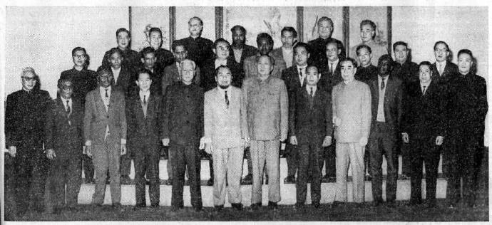 1964年12月24日下午,在人民大会堂一一八厅会见参加亚非文学交流座谈会的亚非国家的作家,刘少奇、周恩来在座。