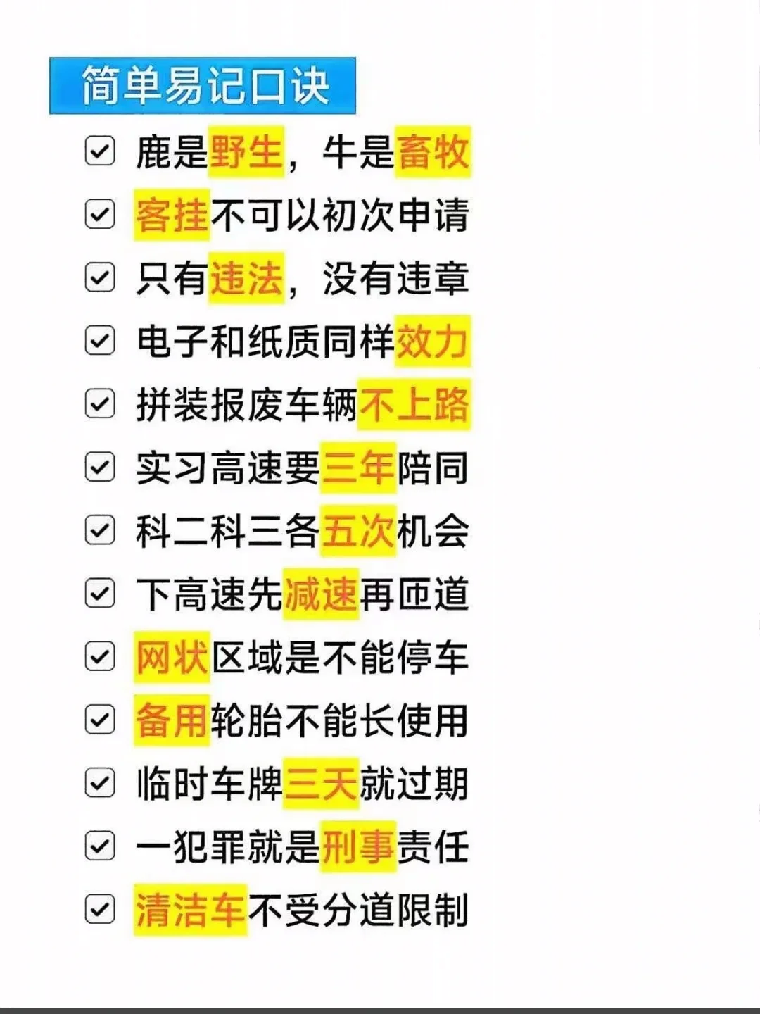 科目一扣分专项 一分关键词 会车、登记、年检、灯光、禁令普倒掉、安全带、长宽高 三分关键词 普逆、电话、人行横道、隐患校车高速限速、高速车道、事故标识、穿插占道 六分关键词 ⑦ 信号灯、未批准、应急车道暂扣期间、尚不犯罪、危险物品 九分关键词 ⑦ 无证驾驶、不符车型、未挂车牌高速违停、休息时间、7座超员