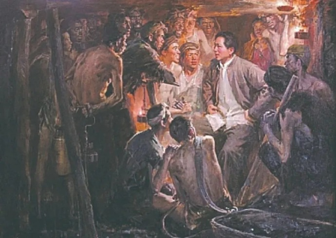 1921年1 2 月 到 安 源 煤 矿 考 察 。 月 中 , 安 源 路 矿 一 部 分 有 觉 悟 的 工 人 致 信 中 国 劳 动 组 合 书 记 部 , 请 求 派 人 到 安 源 帮 助 并 指 导 一 切 。 书 记 部 当 即 派 毛 泽 东 、 李 隆 郅 ( 李 立 三 ) 、 宋 友 生 、 张 理 全 四 人 到 安 源 。 毛 泽 东 以 交 朋 友 的 方 式 与 工 人 谈 心 , 深 入 矿 井 工 棚 了 解 工 人 的 痛 苦 和 受 压 迫 的 情 形 , 随 后 , 派 李 立 三 在 安 源 创 办 工 人 补 习 学 校 , 建 立 社 会 主 义 青 年 团 的 支 部 。