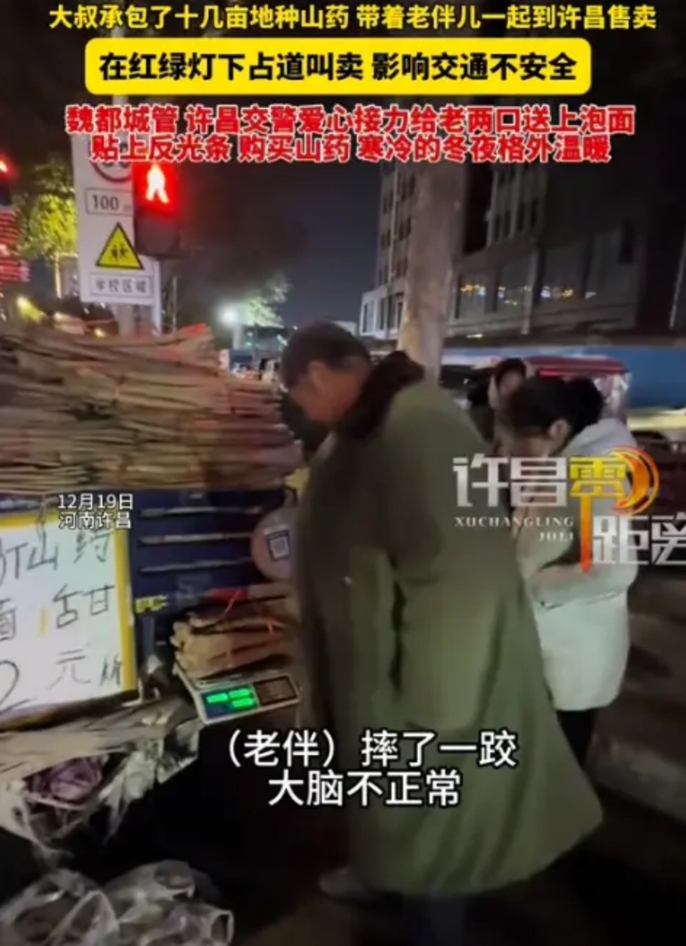 这个城管火了!12月19日,中牟大叔带着脑部受伤的老伴拉了一车山药来许昌卖,被交