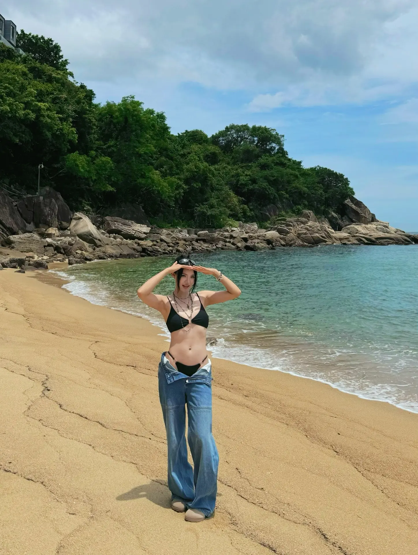宝子们!海边日落真的太好拍了!今天穿的这件渐变泳衣,颜色和晚霞几乎融为一体,剪裁
