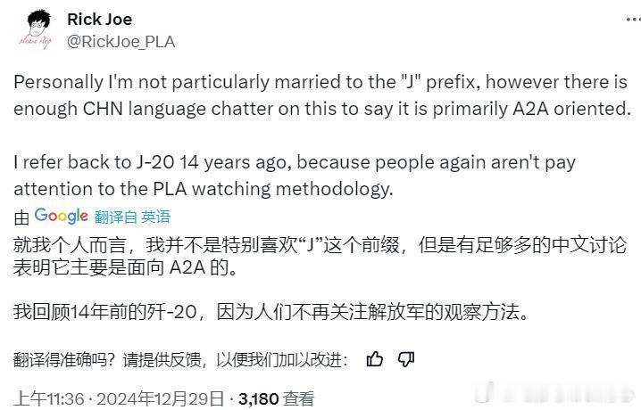 这个Rick Joe经常在外交官杂志上发表跟PLA相关的文章,感觉是每天盯着微博的。