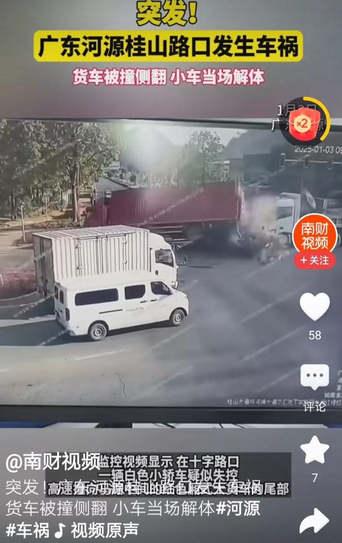河源车祸,小车当场报废……看视频车是从别的车道猛冲直撞,这个不应该是不会开车的人进行的行为,还是啥缘故?……年底了,大家开车注意安全,不会开车的先练好再上路呗,安全事故发生真是太恐怖了