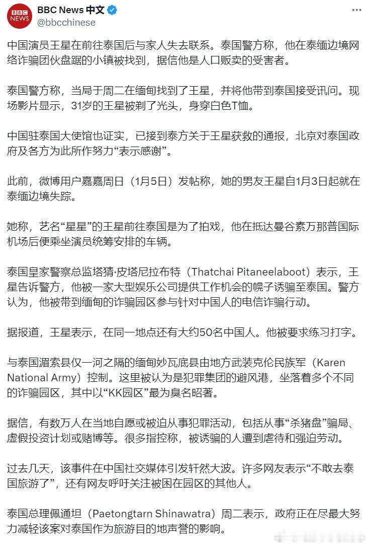 演员星星演员王星讲述被骗缅甸过程BBC中文发了这个,然后又立即删除了…