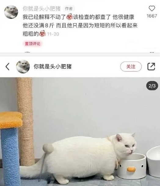 我家大白猫13斤多,最胖的时候十五斤。看起来都没你这胖……