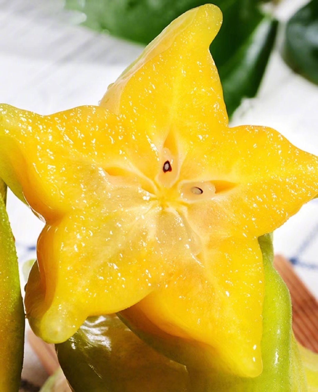 杨桃不仅好看,而且香气芬芳,切片放进嘴里,首先是一股青涩的味道,咀嚼后,有一股蜜香和花香味道的柔和,酸甜爽口,挺有意思。杨桃,又名阳桃,是久负盛名的岭南佳果之一。杨桃清甜香脆又多汁,果皮极薄,入口是超清爽的脆甜,仿佛集合了芒果、柠檬、葡萄最清新的果味因子和香气,融合出了一种干净淡雅的高级感。