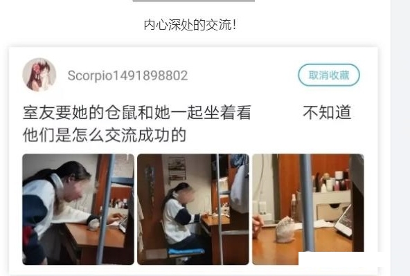 室友要她的仓鼠和她一起坐着看他们是怎么交流成功的