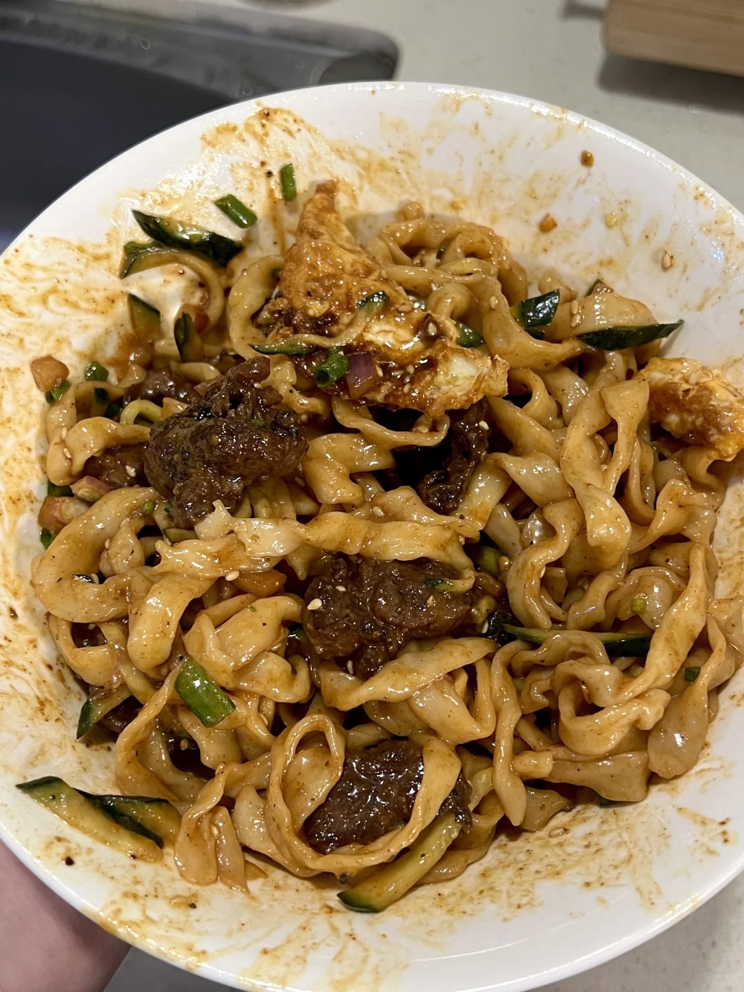 omg家人们!!!拌面真的信我!这个面和洋葱面一样好吃!!!!做法也超简单!不用担心腻!黄瓜丝多放一点就行!这个搭配你就吃吧!!!!每一口都超幸福!!!