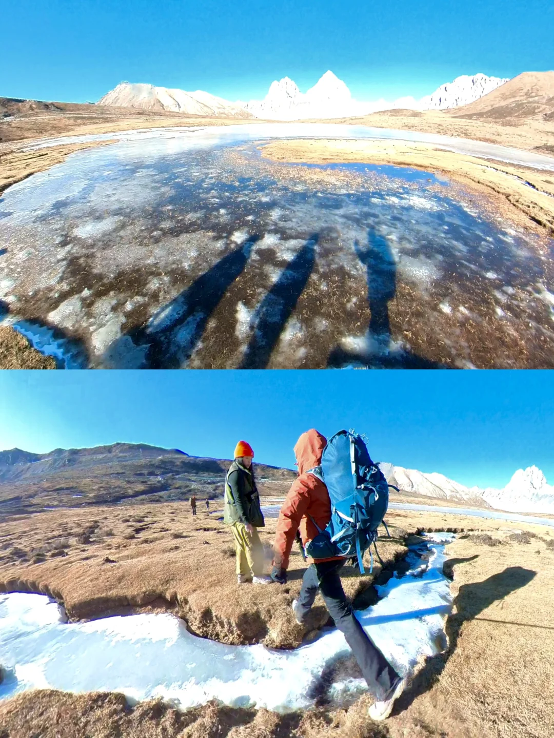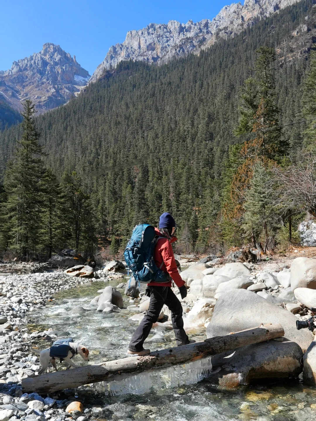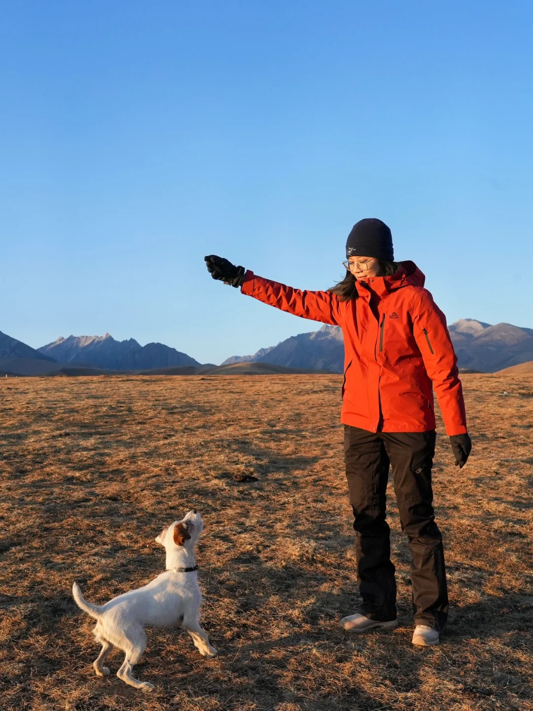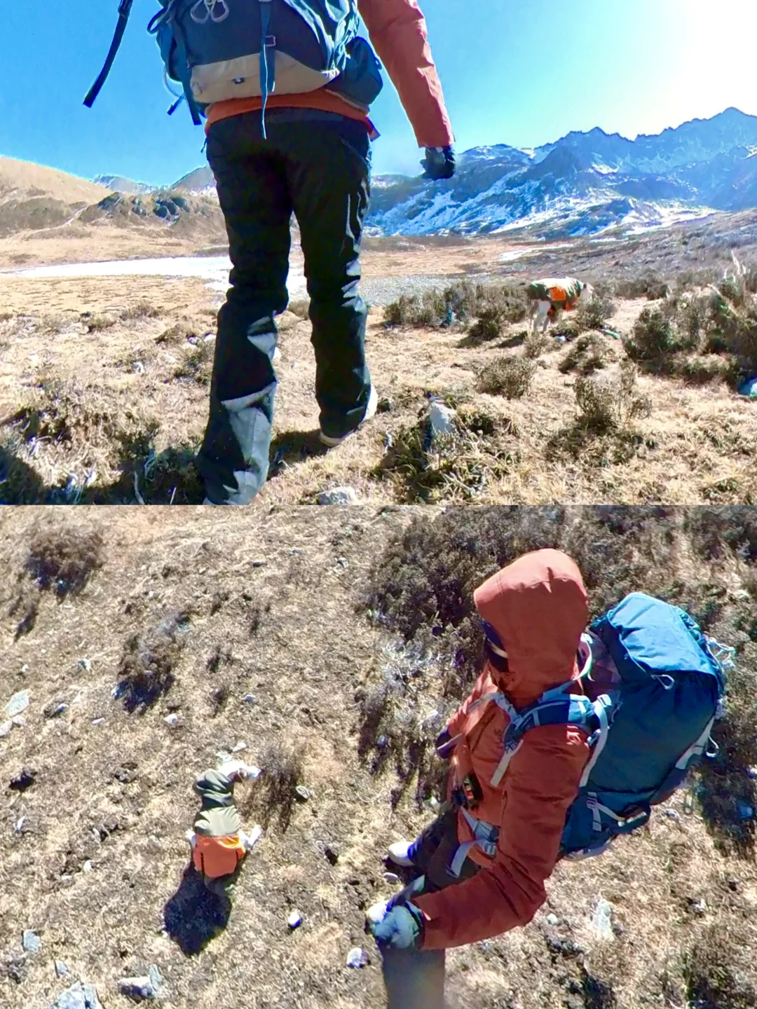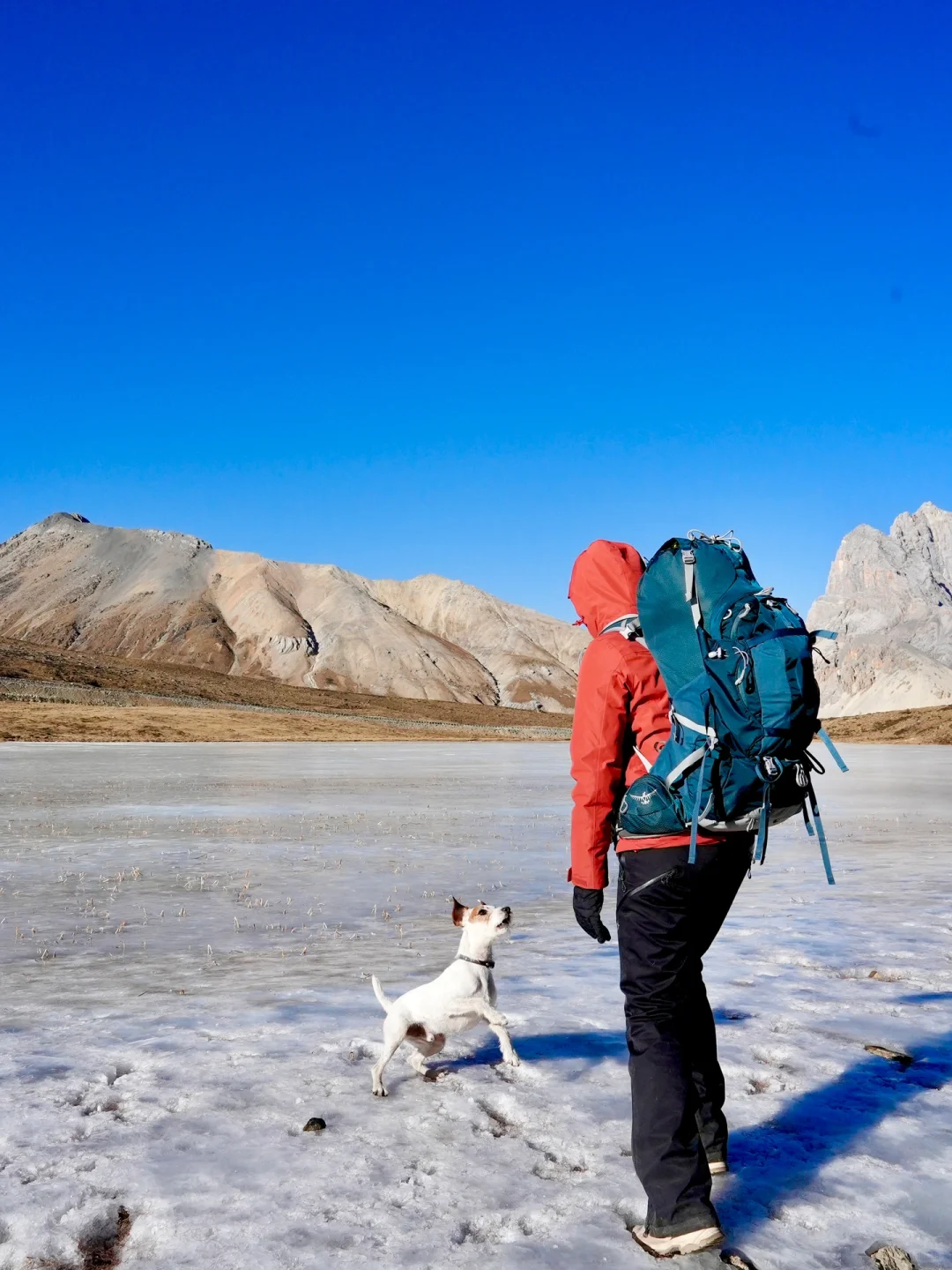 🏔️以往总想着完成某一条徒步路线、尽力登顶每一座山,这次来到川西,因为知道自己会高反而没做任何徒步计划;在G318上驾车看到山坡下远处好看的景色,忍不住停车去挑战——狗狗不像人,他大概率不会思考风景有多壮丽,也不关心前方有多少挑战,他或许只知道这里有一大片草地值得撒欢,这条半结冰的溪水可以痛快踩一脚,当他在我旁边,风吹乱毛发、眼睛发亮,才又让我重新意识到户外旅程真正值得做的不是挑战,而是享受:背上背包走过草甸,穿过结了冰的海子、来到雪山面前,在这片广阔天地间,享受微风轻拂下低氧状态的微醺感,真的太棒啦!