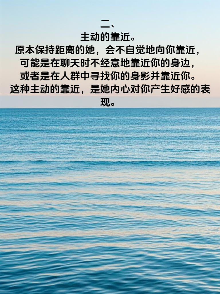 一、眼神的变化。她开始频繁地看向你,眼神中透露出一丝羞涩与好奇,当你的目光与她交汇时,她会迅速移开视线,又忍不住偷偷地瞟向你,这便是她心动的第一个信号。 二、主动的靠近。原本保持距离的她,会不自觉地向你靠近,可能是在聊天时不经意地靠近你的身边,或者是在人群中寻找你的身影并靠近你。这种主动的靠近,是她内心对你产生好感的表现。 三、对你的关心。她会开始关注你的生活细节,询问你的近况,记得你说过的话和做过的事。当你遇到困难时,她会主动关心你,给予你帮助和支持,这无疑是她对你心动的重要信号。