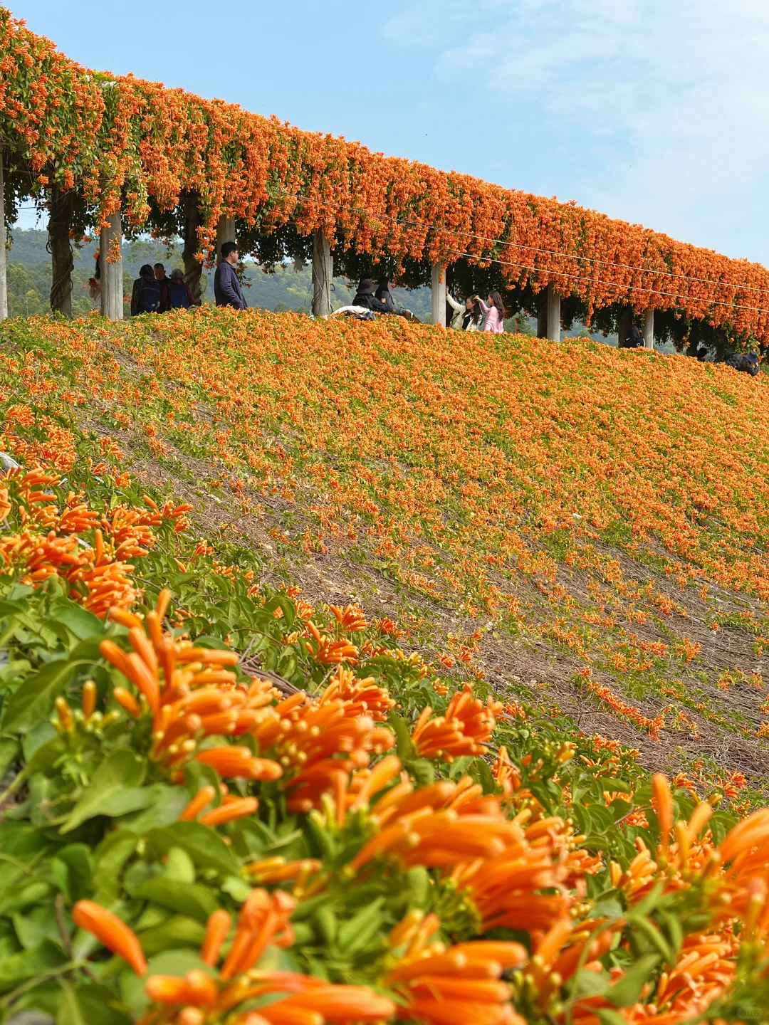 这一大片的三角梅确实很壮观✨,很鲜艳,不愧是春季赏花好去处。今年还新种了炮仗花和格桑花,花也多了许多。还新铺了水泥路和停车场,赏花更方便了~