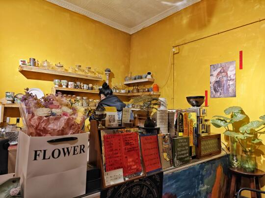这几年所谓九紫离火运,玄学很火,加上大家普遍挣不到钱,更多年轻人在上班和上进之间选择了上香。随之而来的,也出现了玄学酒吧和玄学咖啡馆。江北鲤鱼池劳动二村的午盏灯是玄学酒吧,而南岸马鞍山背街这里就是玄学咖啡馆:普照咖啡。