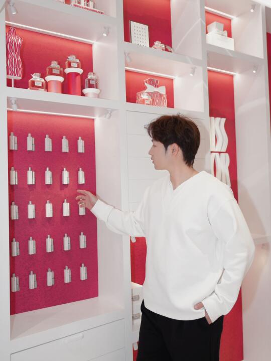巨型玫瑰香氛墙+银色镜面礼盒装置,随手一拍就是高级感大片,朋友圈素材这不就有了嘛~
