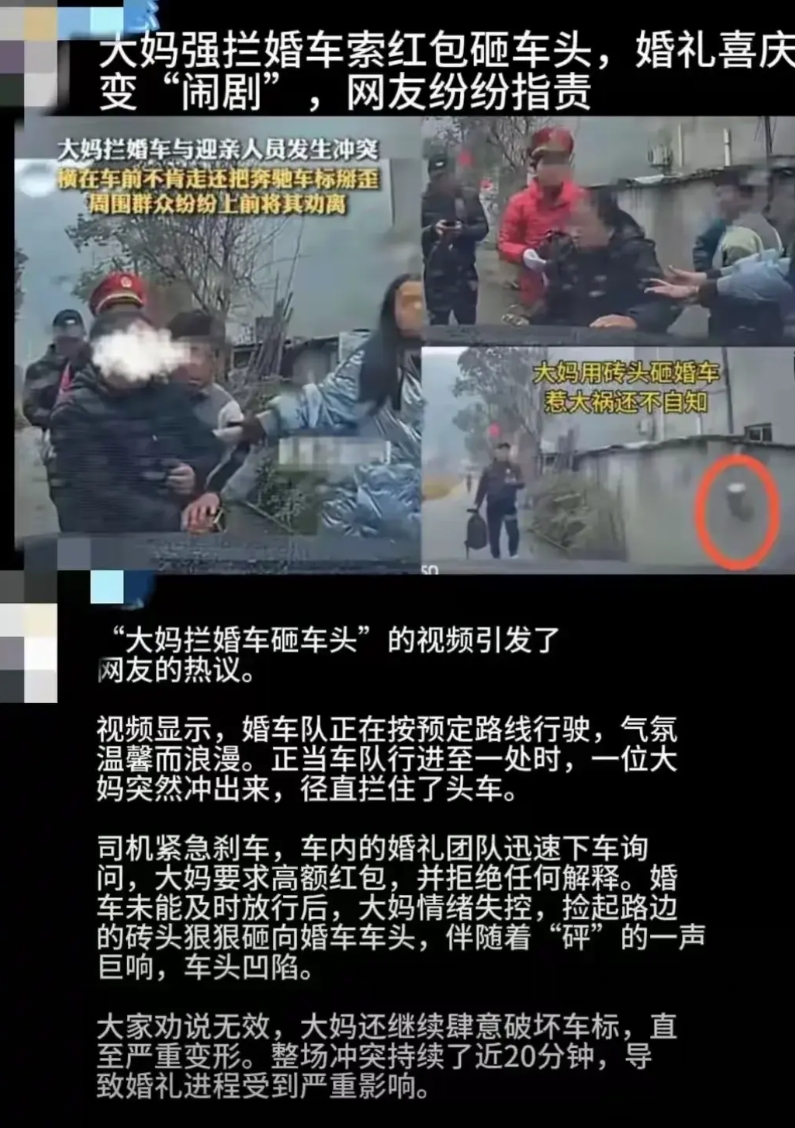 大喜日子突遭砖头砸车!大妈撒泼20分钟结局亮了