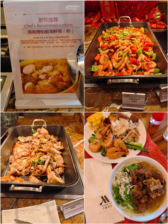 三🔥、餐饮 | Dining 万豪系的度假酒店大多没有行政酒廊,早餐在一楼咖啡厅享用。有广式蒸点(蒸鸡爪,蒸排骨,肠粉,虾饺,烧卖)等等,还有现煮的糟粕醋海鲜面。面档浇头还有牛杂、萝卜牛腩等等。(P8~P9)