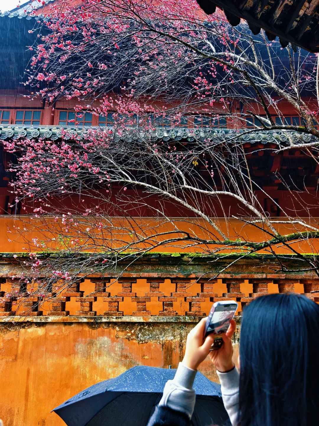 1️⃣大雄宝殿右侧,可以拍到出墙的隋梅。(P2,P3)