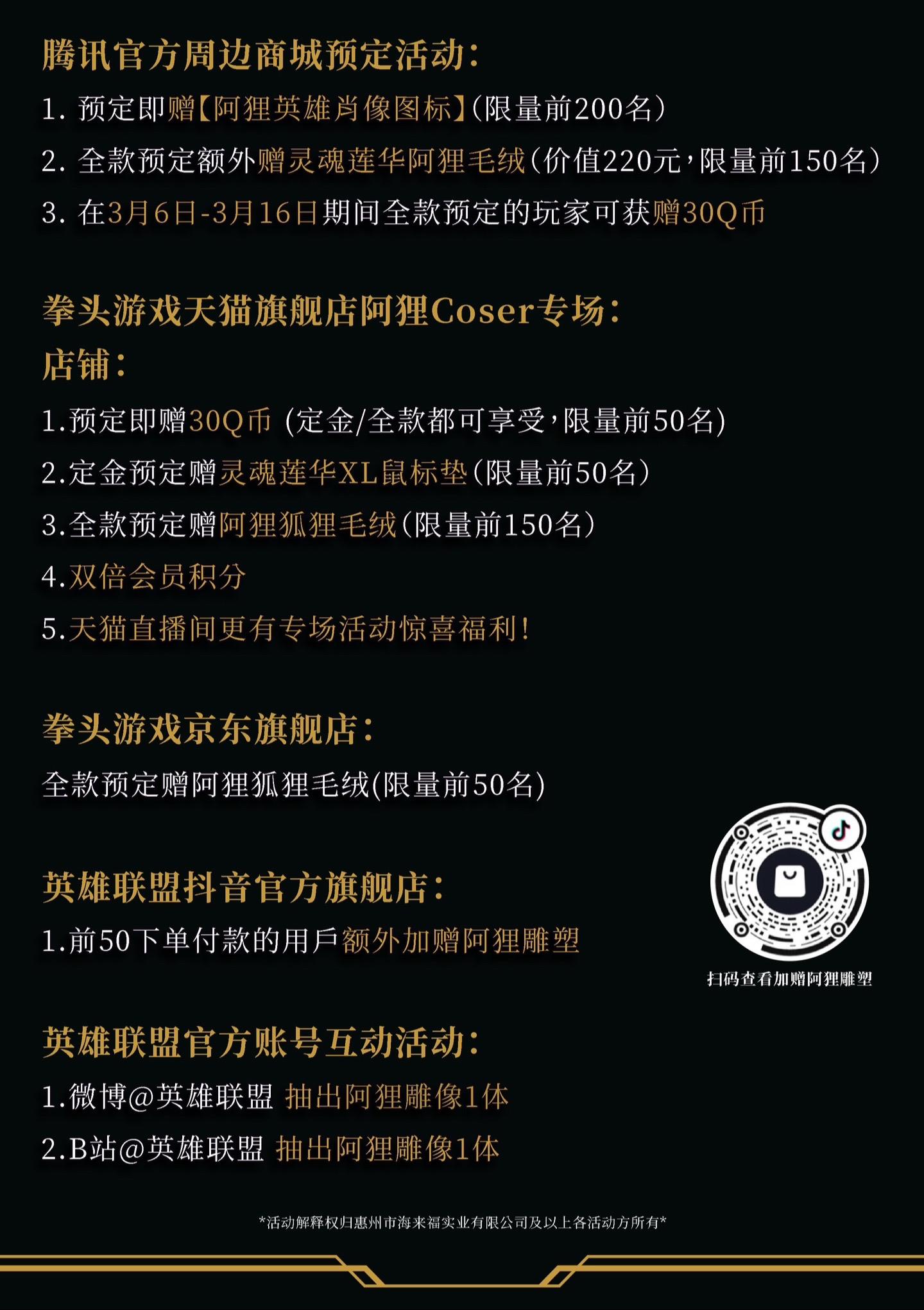 💡阿狸开定直播薅秃福利!抽免单、送雕像!