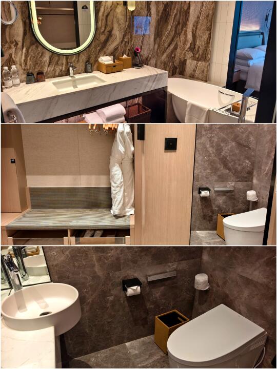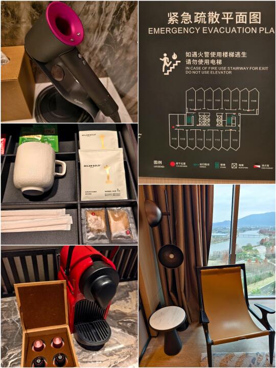 作为新开业的酒店,套房配置拉满,胶囊咖啡机、戴森吹风机、电动窗帘、智能马桶都安排上了。