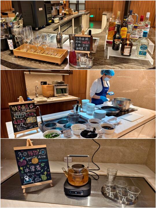 行政酒廊在最高层25楼,有特色面点,现做的小馄饨和当地特色“麦鼓头”,荤菜有牛肉和蛏子等,出品还是不错的。除了洋酒外,还有台州当地的“江南米酒”。 (P11~P13)。