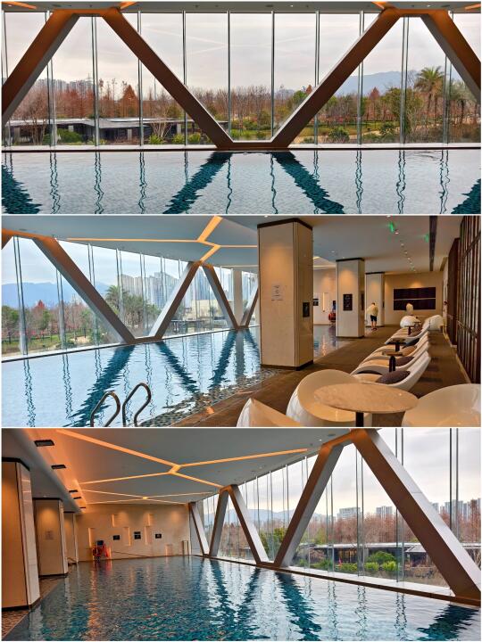 健身房和泳池都位于酒店的2楼,泳池是25米的,更衣室还配有桑拿房。(P17~P18)。