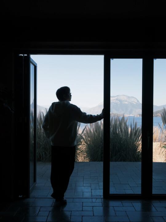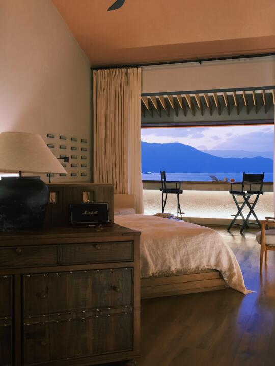 夯土墙裹着松木香,推窗截获流动的湖光。