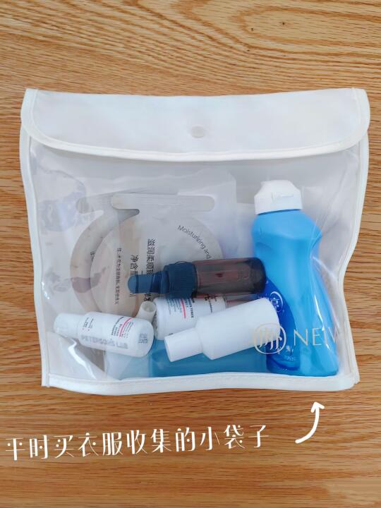 化妆包、护肤包、洗漱包这些可以直接用塑料袋装,超省空间,还轻便!