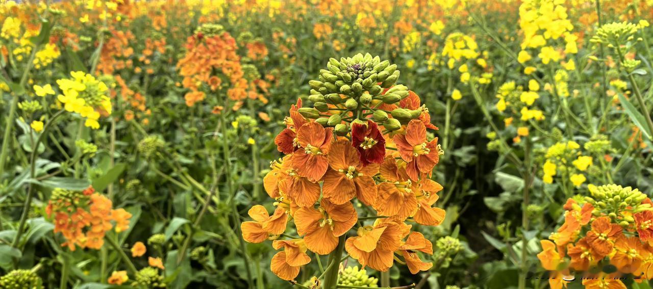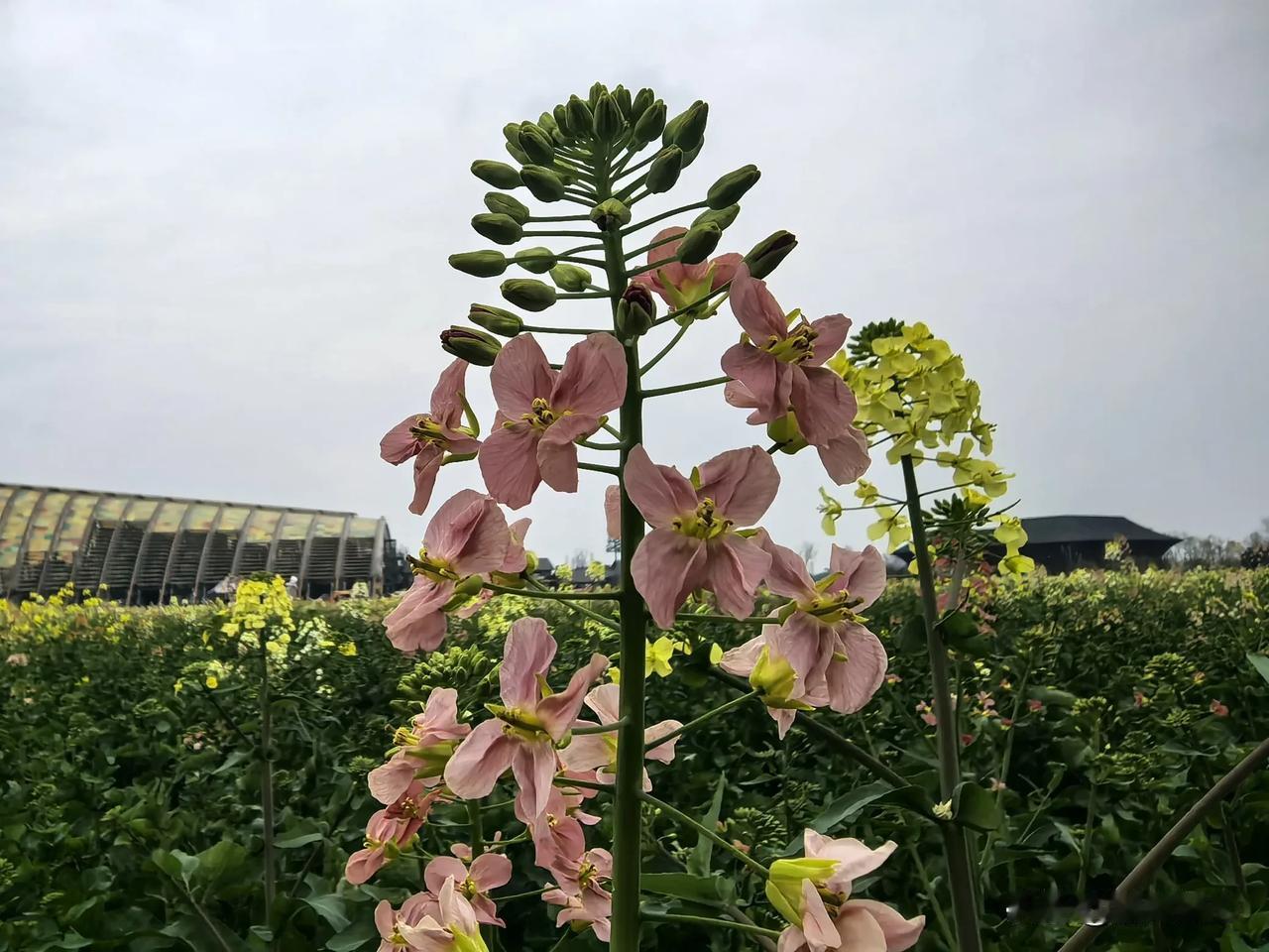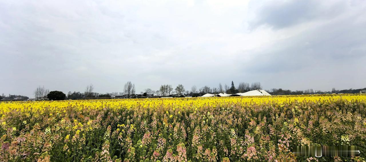 新津农博园,春天里特别的浪漫。 五颜六色盛开的油菜花到处妆点。 偶遇拿着奶茶的李
