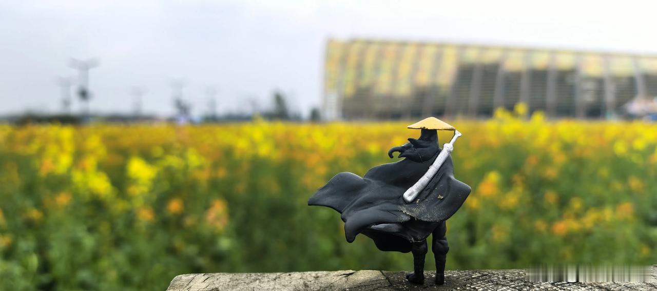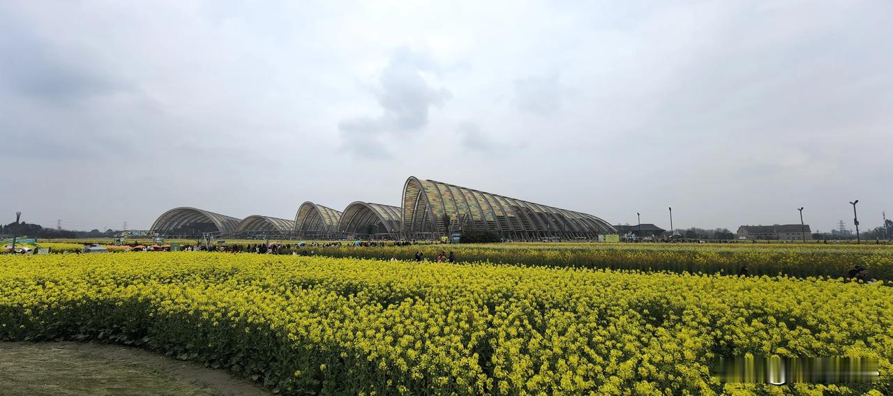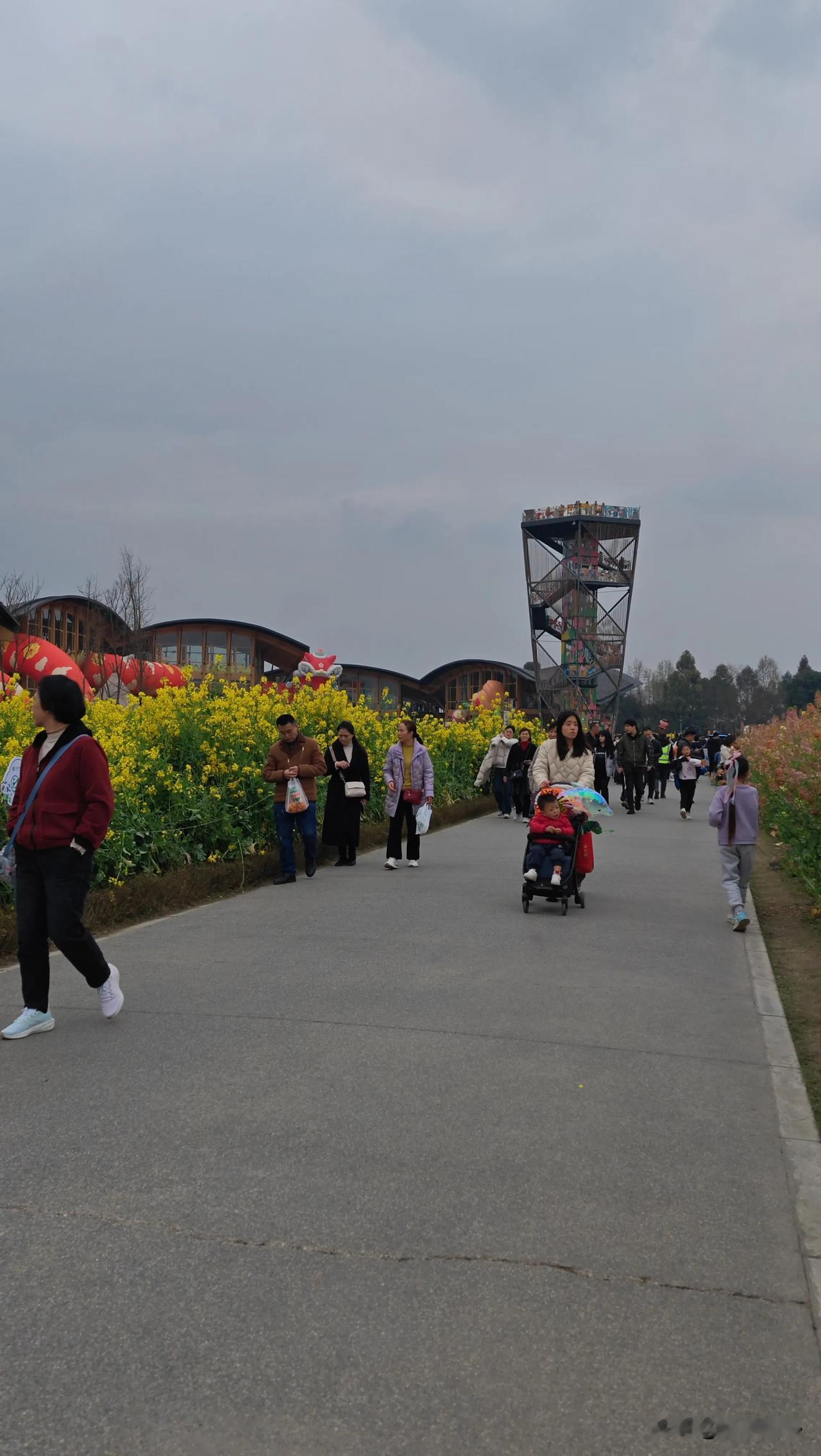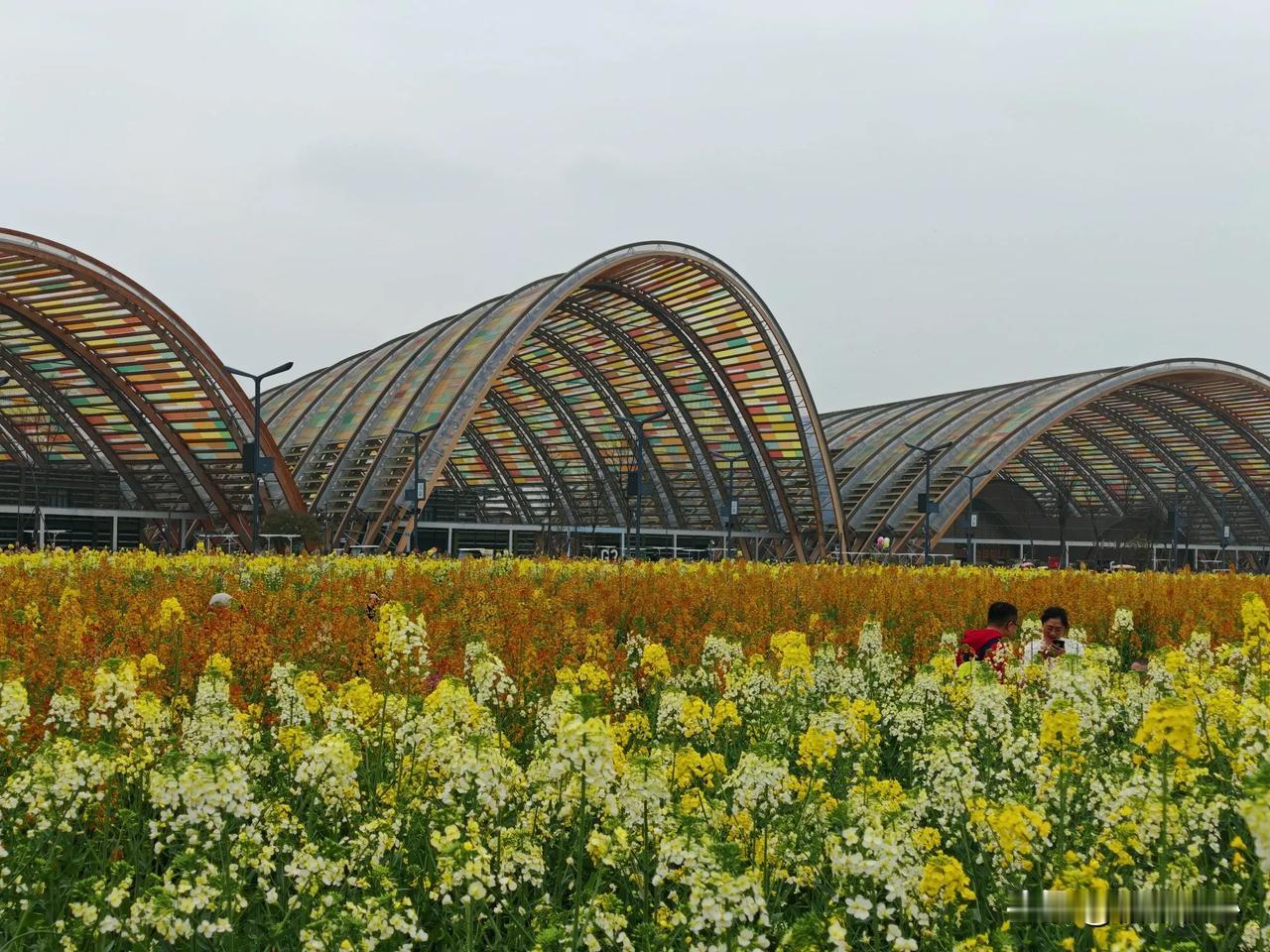 新津农博园,春天里特别的浪漫。 五颜六色盛开的油菜花到处妆点。 偶遇拿着奶茶的李白,快意泯恩仇的剑客。成都春日油菜花