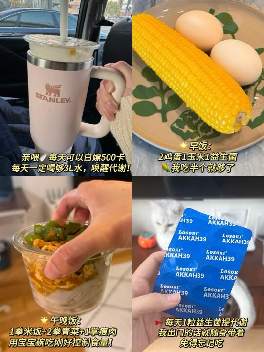 🍳 早餐:2个水煮蛋+半根玉米(必须9点前吃完)+1粒losoki益生菌