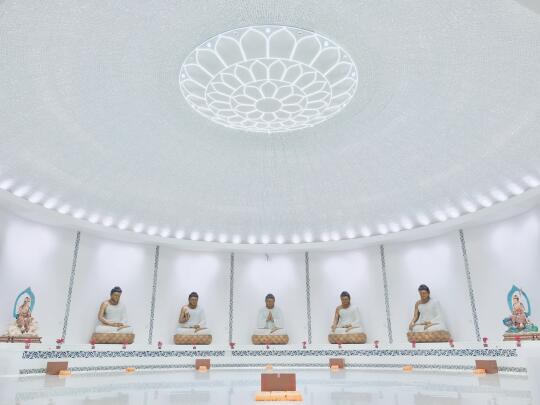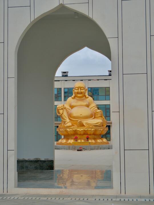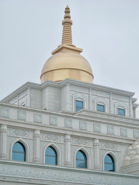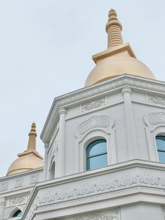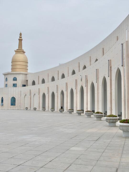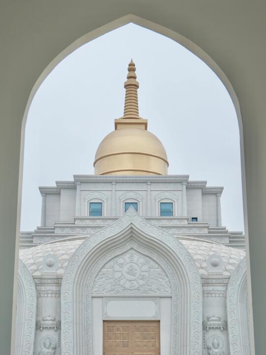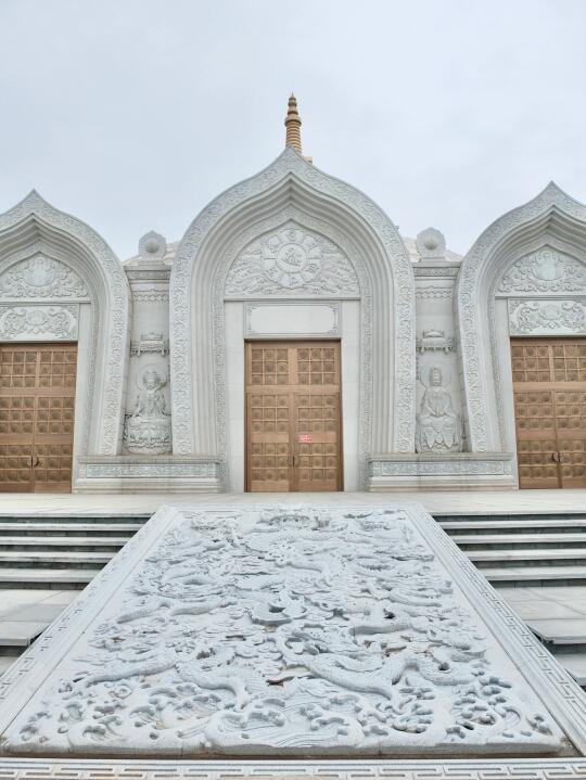 在周边回廊上,随便一框都是几何美学。如果阴天来,可以蹲到蓝调时刻亮灯,寺庙瞬间蒙上一层雾霭感,手机随手拍都像电影感