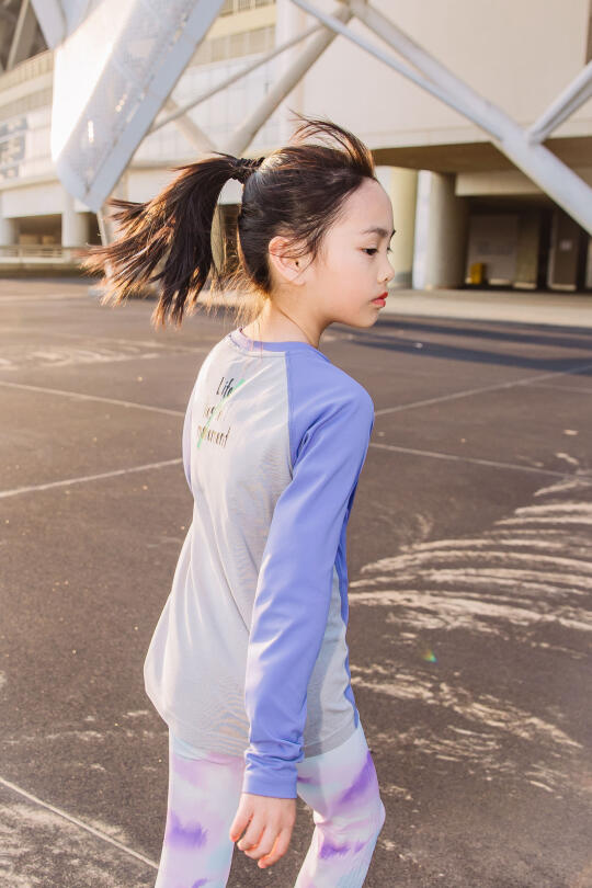 春夏时节,[太阳R][太阳R]阳光和煦,选择平整开阔的场地,穿着[向右R]UTO2025儿童运动🏃♀️拼接T恤,透气吸汗强,让运动更轻松。