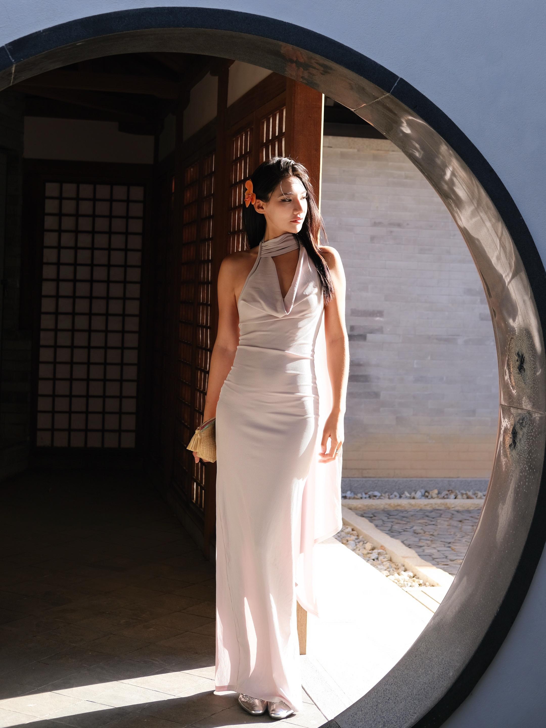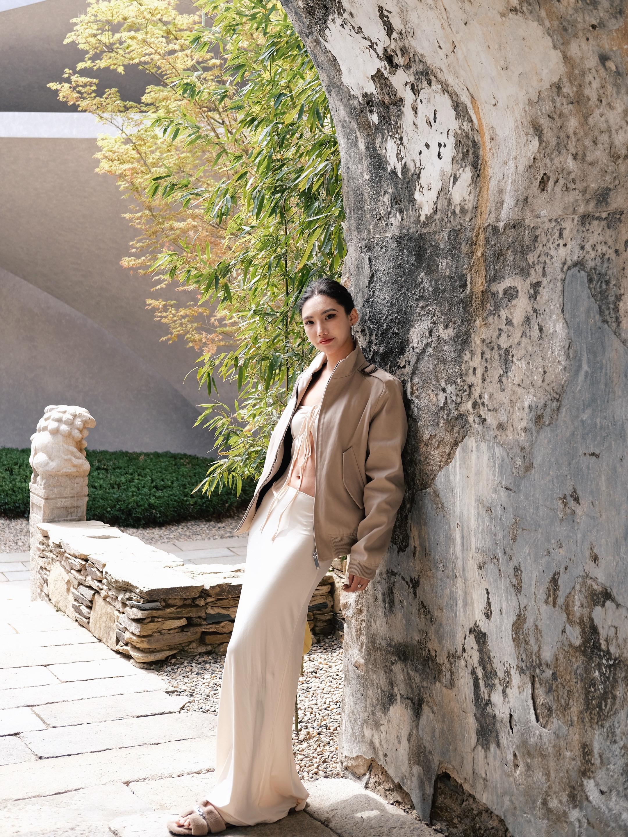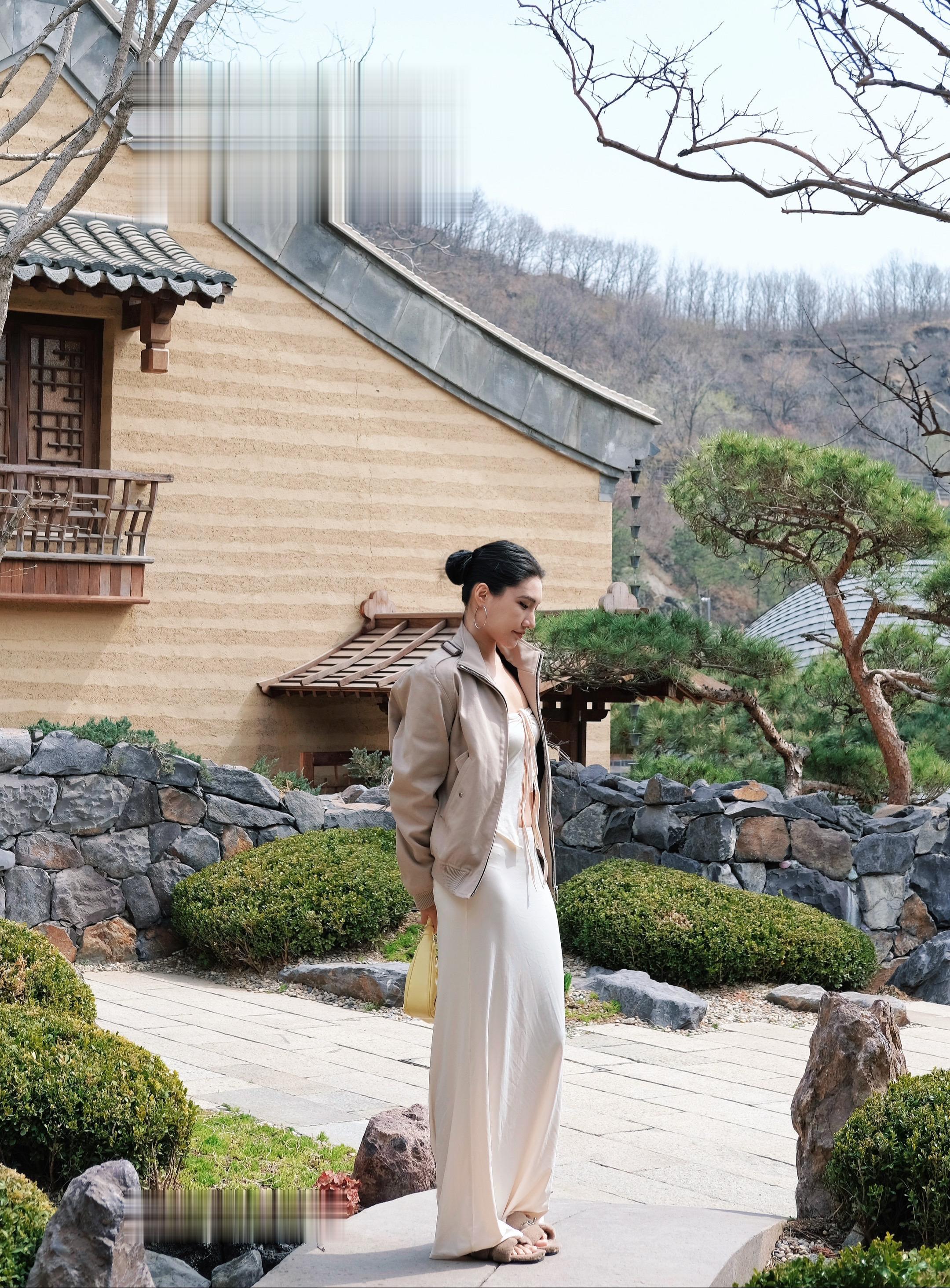 米白裙子一穿,会议室秒变T台。不靠loud颜色抢戏,靠面料说话。真丝垂得