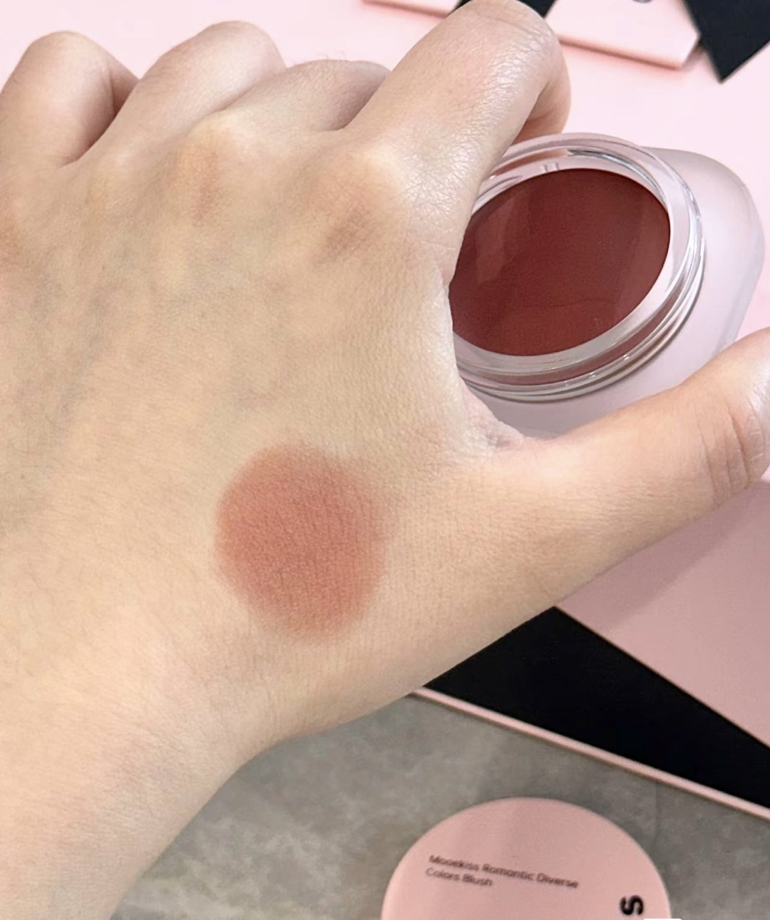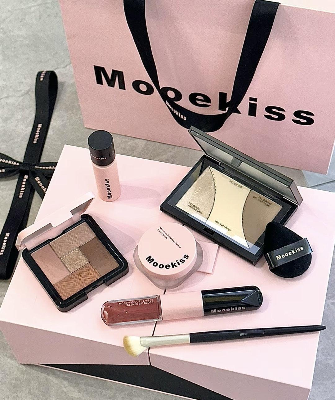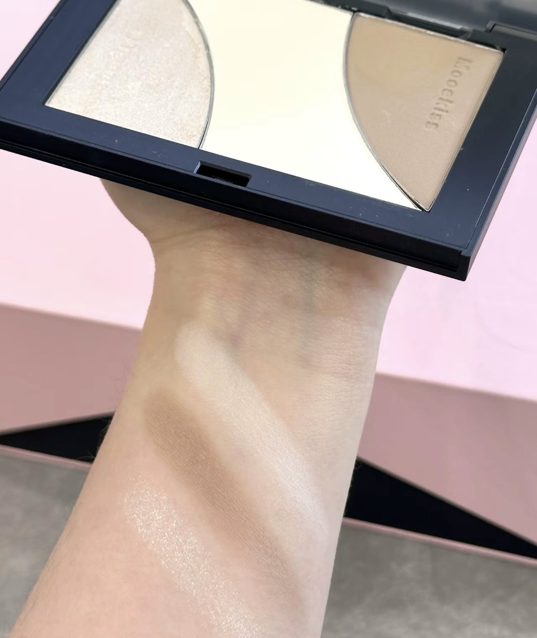 打开之后里面是:唇泥、双头唇釉、修容盘、眼影盘、腮红膏、粉扑和化妆刷色号都是日常提气色的那种显白 也不挑皮
