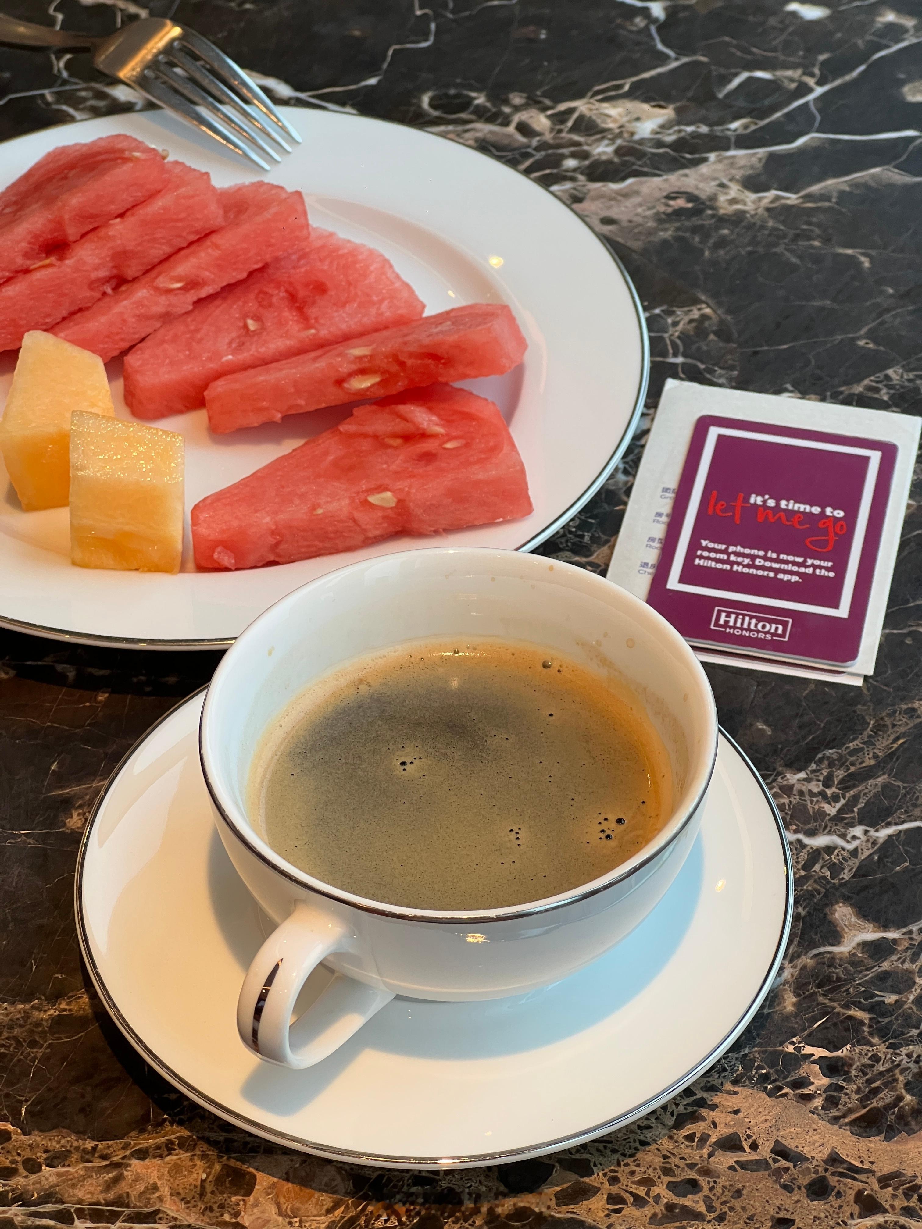 走到哪里都要喝一杯☕️上周末去了散装台州,椒江城区自然是要住希尔顿的,这里也是整