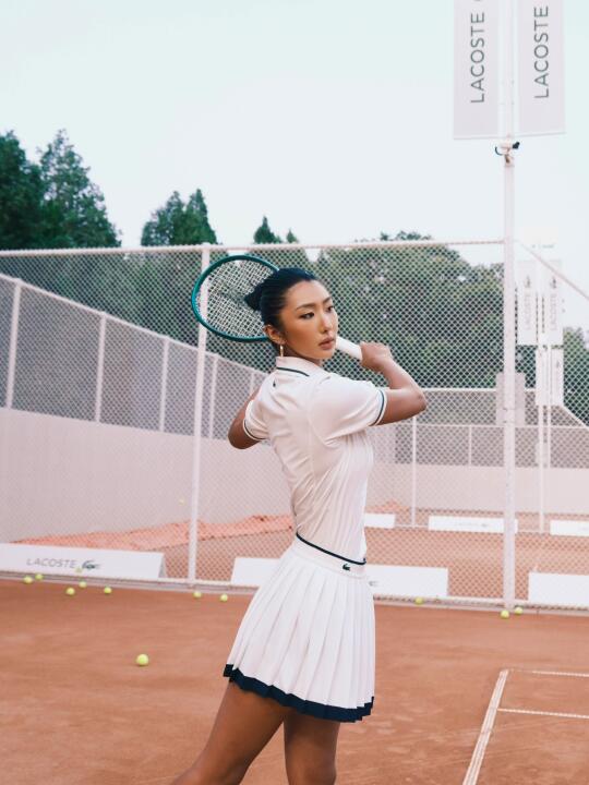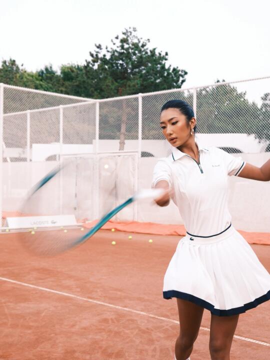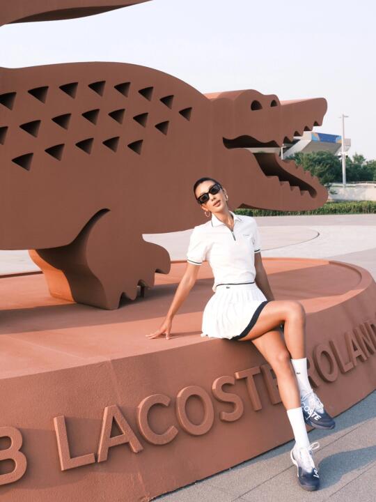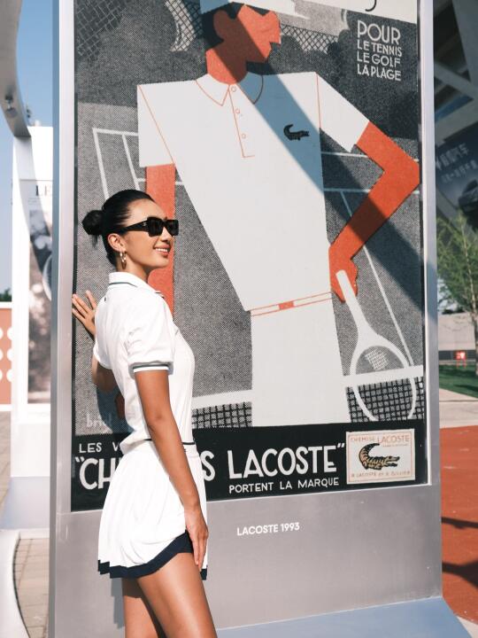 巴黎似乎不关心输赢,只记住谁摔得漂亮,又仿佛在说“优雅是暴风雨后红土粘在全白色裙摆上的一抹绣红和还能用沾尘的手端起红酒,” 鳄鱼的logo上倒映着光
