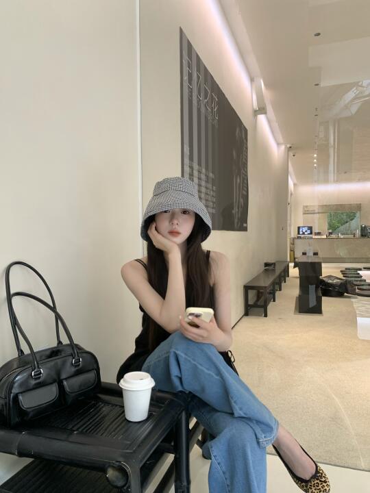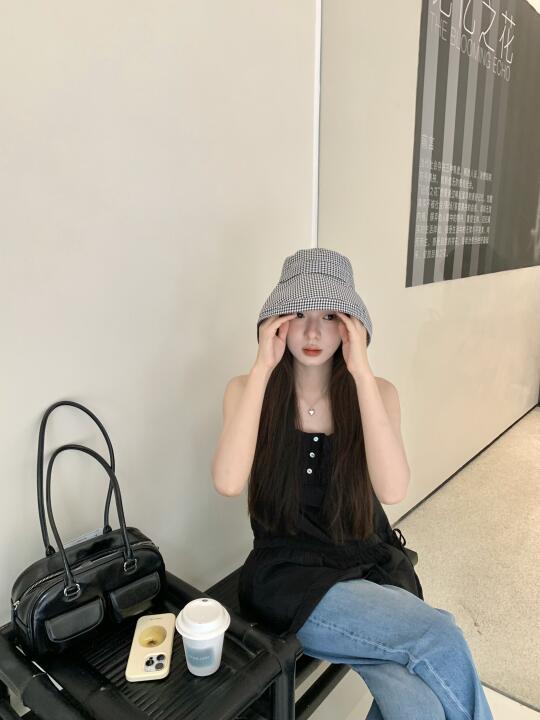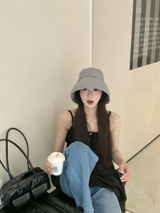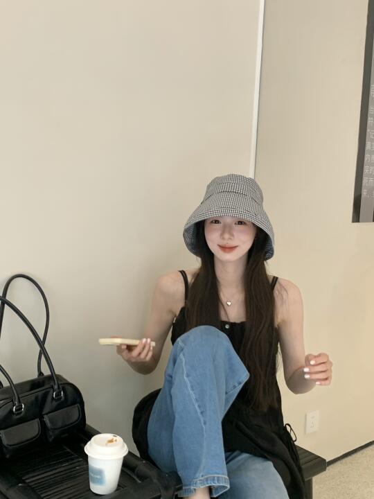 咖啡店坐坐防晒帽渔夫帽ootd氛围感韩系