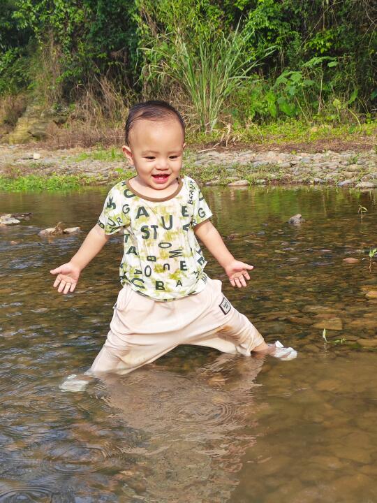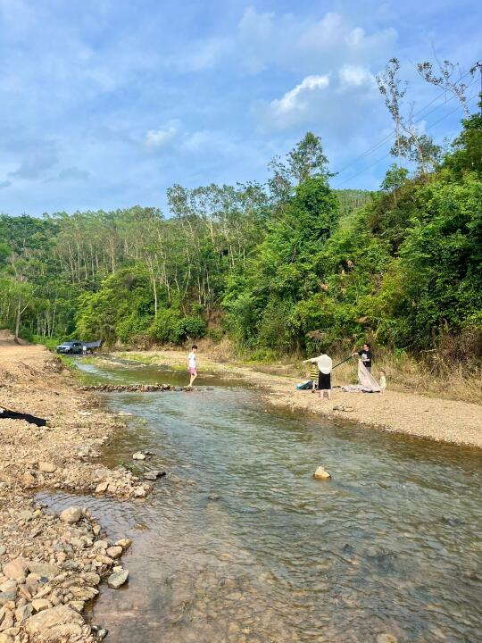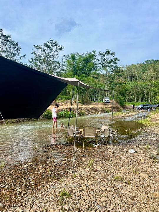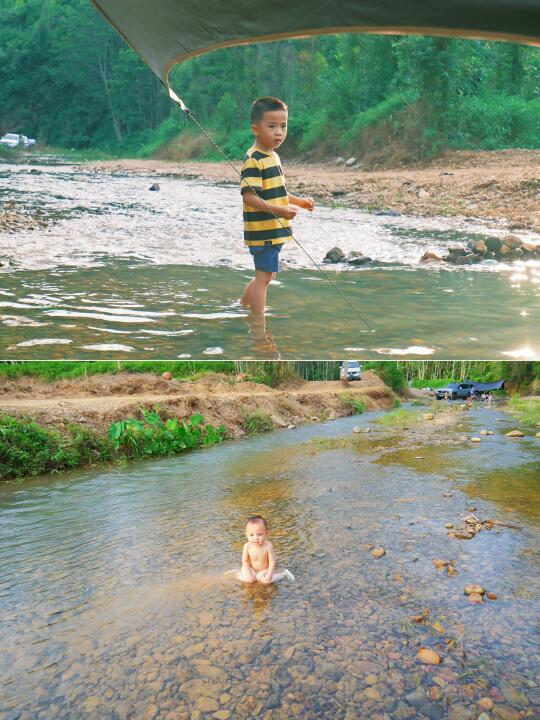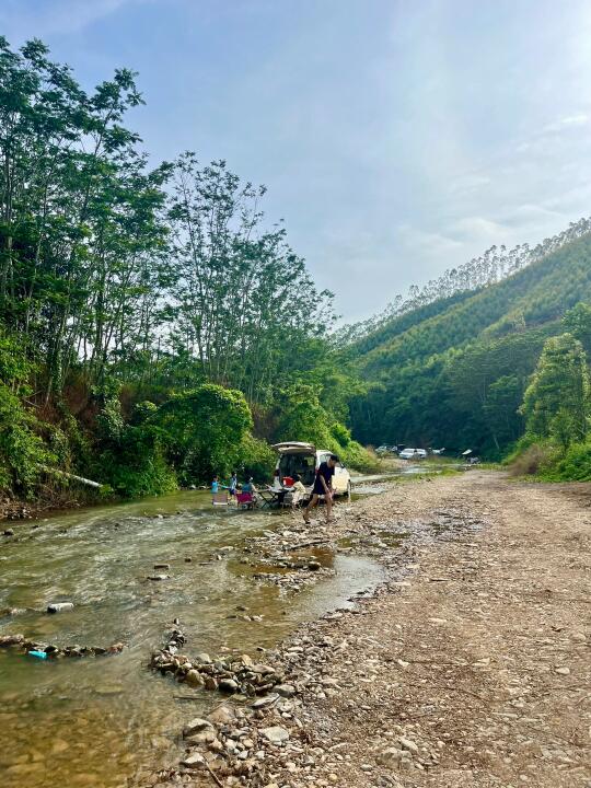 溪流还很长 有部分有树荫好位置 帐篷都不用搭🌳