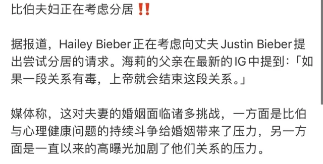 续集当然就是海莉和比伯目前准备要分居,不过海莉还是一惯的态度,她对于比伯从来不会做得特别绝。