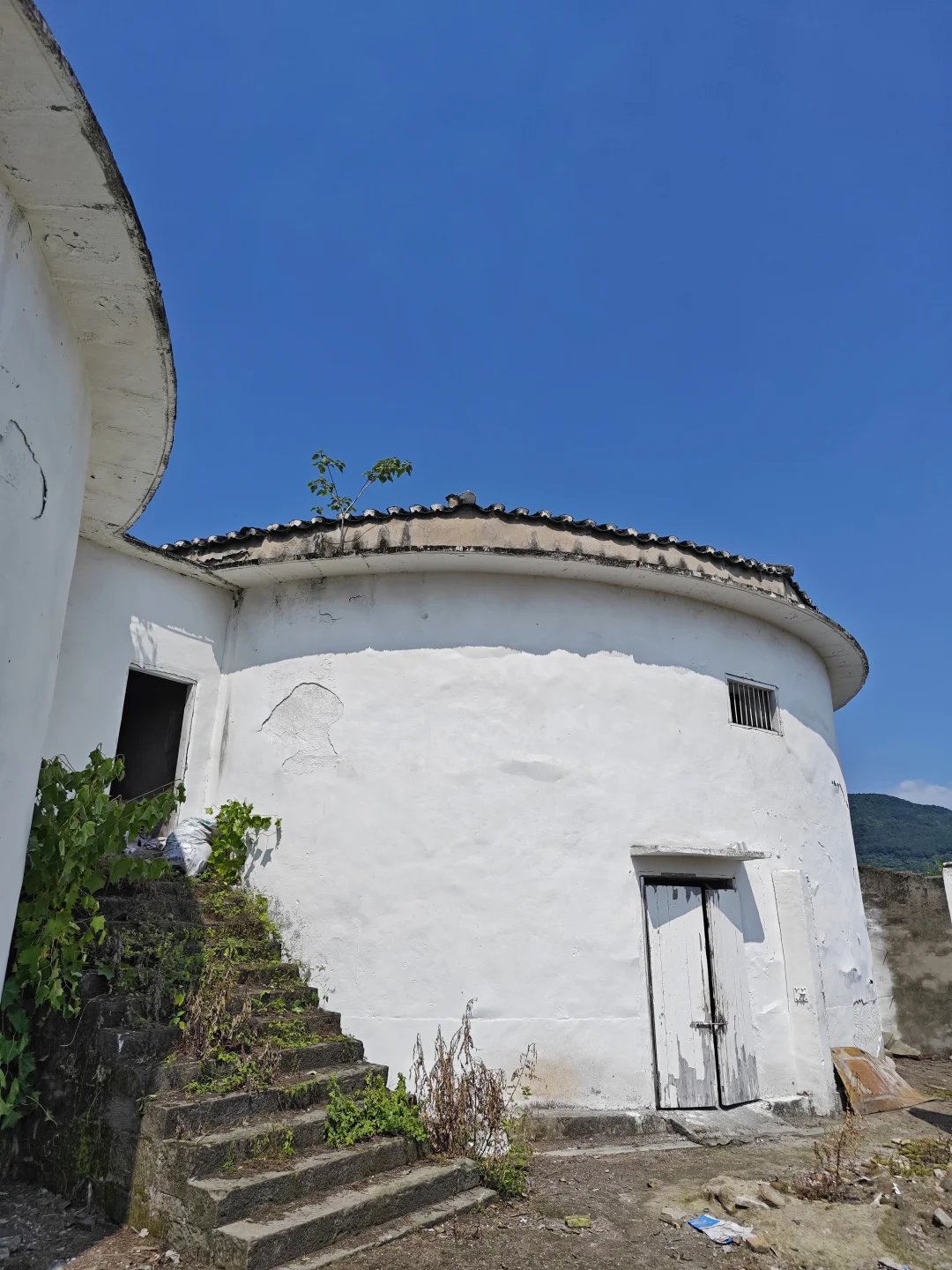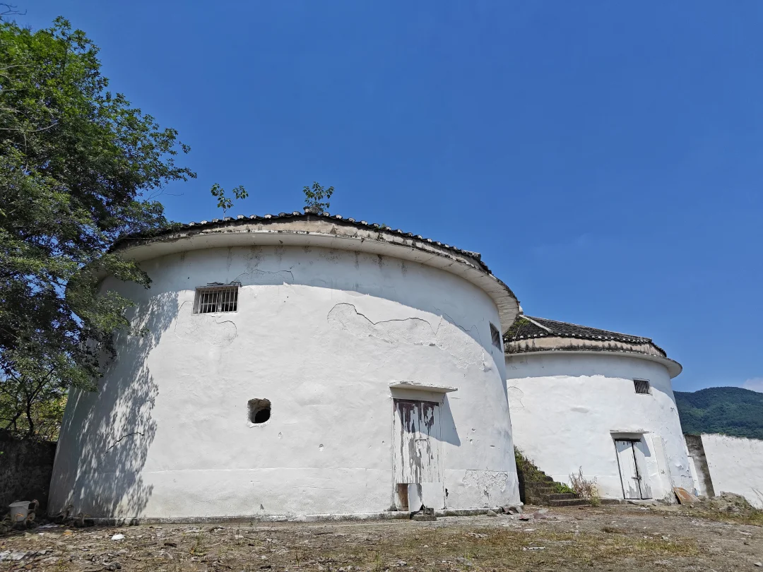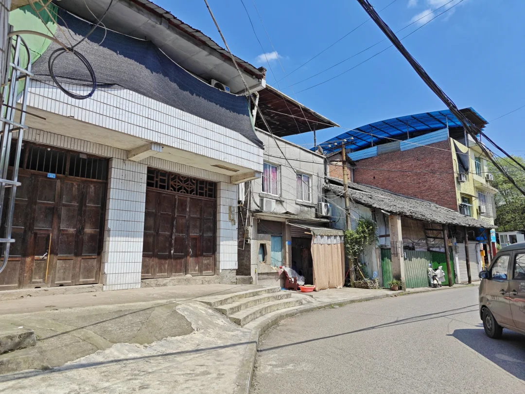 我去的时候是下午,有点热,街上比较冷清,但每个麻将馆还是人气很高,麻将声不断。街上的旧房屋和新房子混杂在一起,绝大部分是村民自建房,没有太多建筑特色,也没有看到著名的文物古迹。一直走到镇上的边缘,发现这里居然有几个圆形的建筑,比较高大,外墙全部刷白了,一看就是粮仓。因为和长生桥老街的那几个粮仓几乎一模一样。但这几个粮仓没有挂文物古迹牌子,里面也只是堆放着杂物。有人在外面养了不少鸭子,看来目前是空置状态。