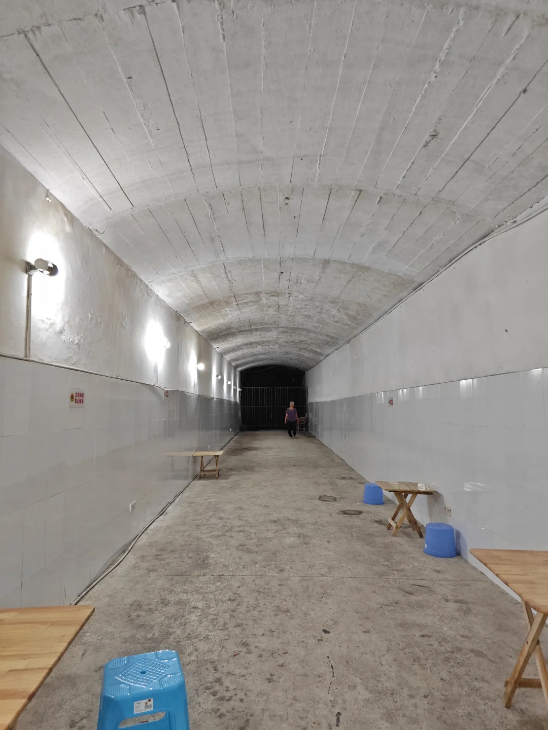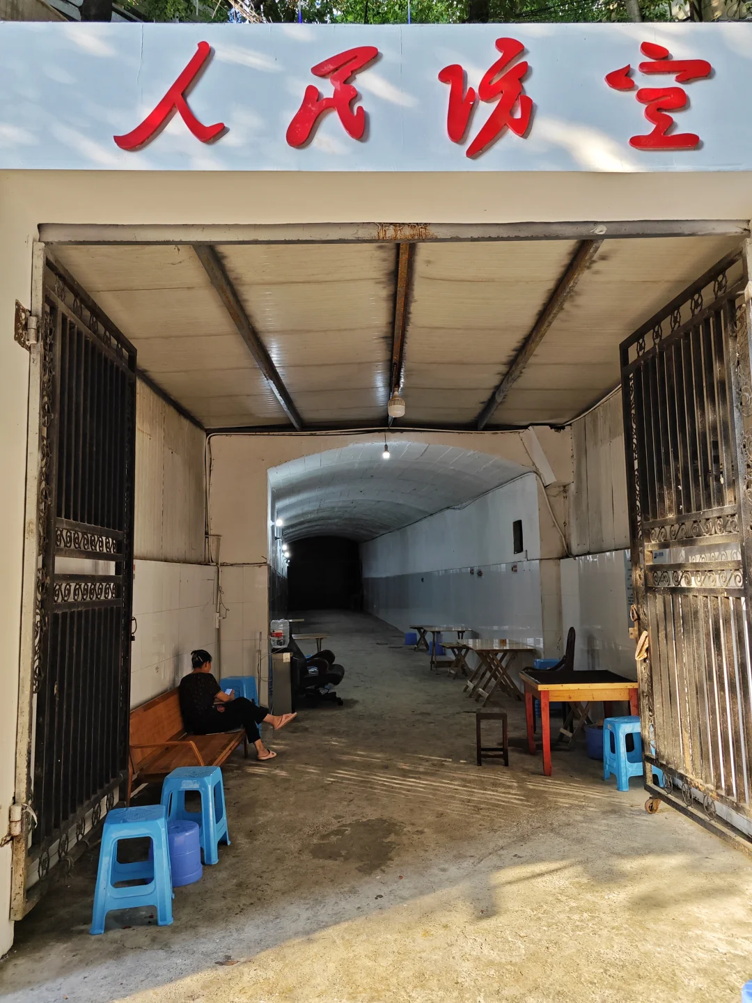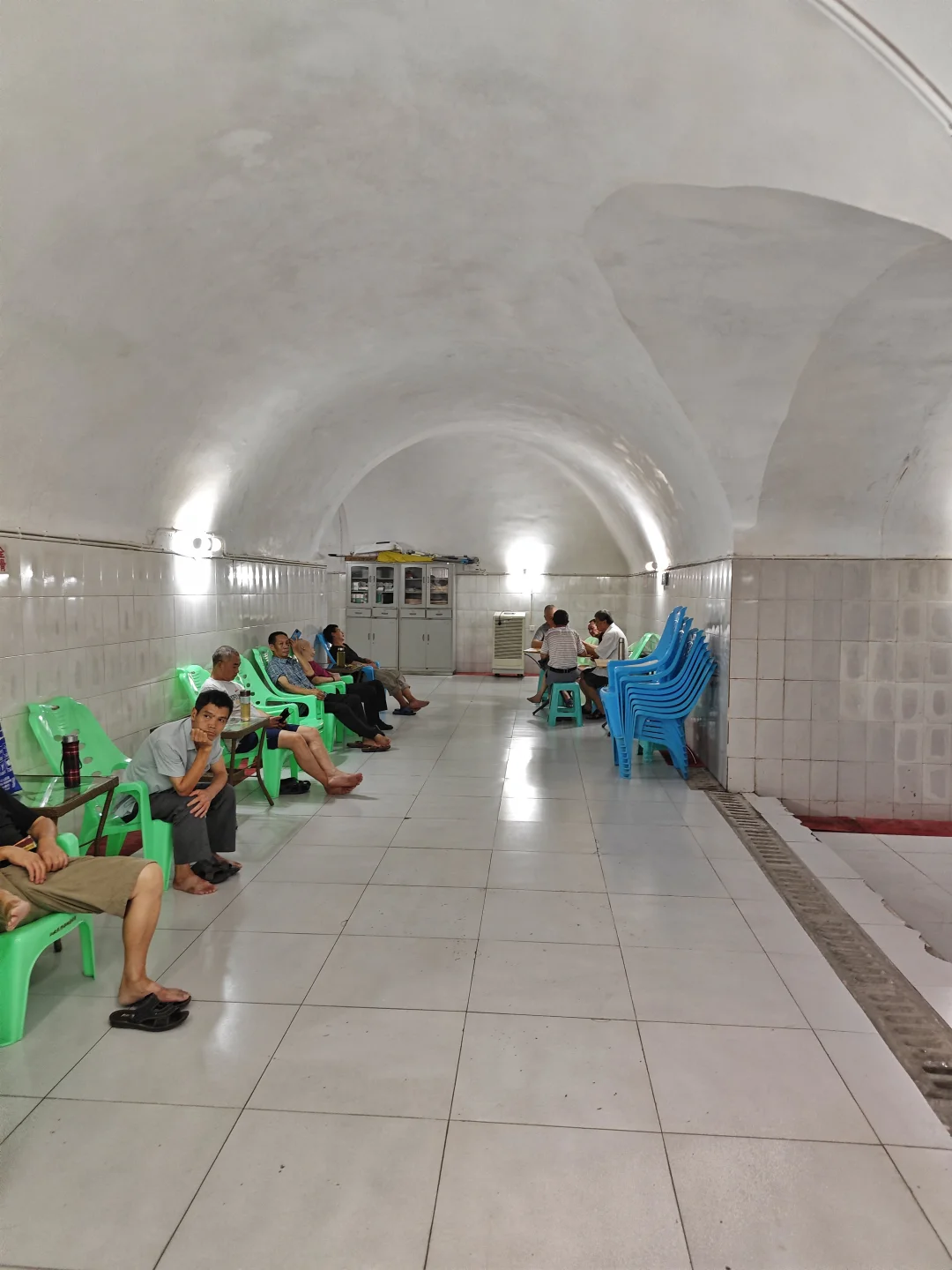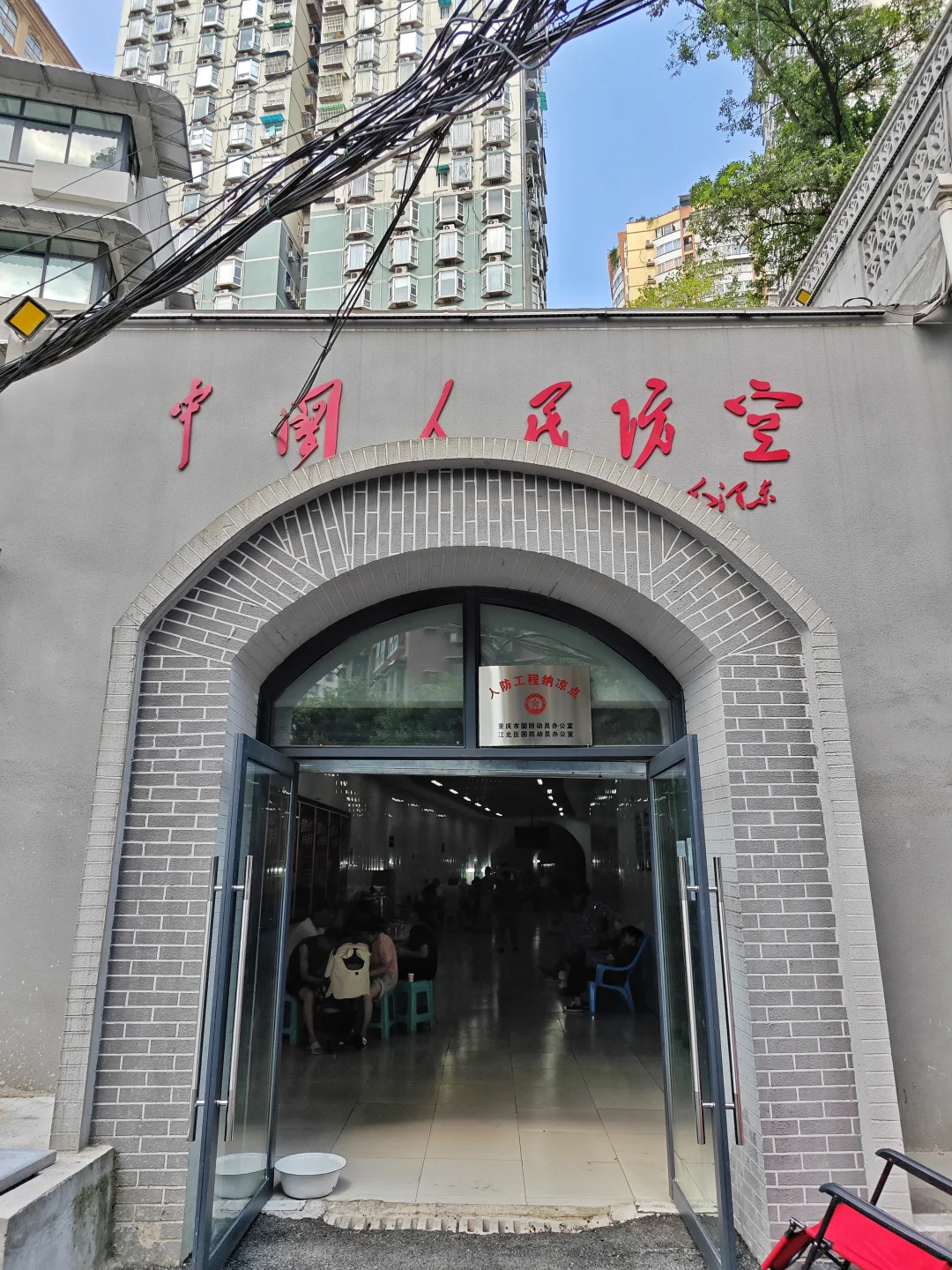 轻轨站乘凉有一个缺点,没饮水没充电。除了轻轨站,还有市政开放的人防工程纳凉点。重庆从陪都时期为了躲避日本飞机轰炸,全城大量挖防空洞,形成了山城地下防御体系。因为重庆地理条件可以挖洞,在1960-1970年代的三线建设时期,又在这基础上大量扩建防空洞,把整个重庆城地下挖空了一大半,所以重庆城区随处可见防空洞出入口。