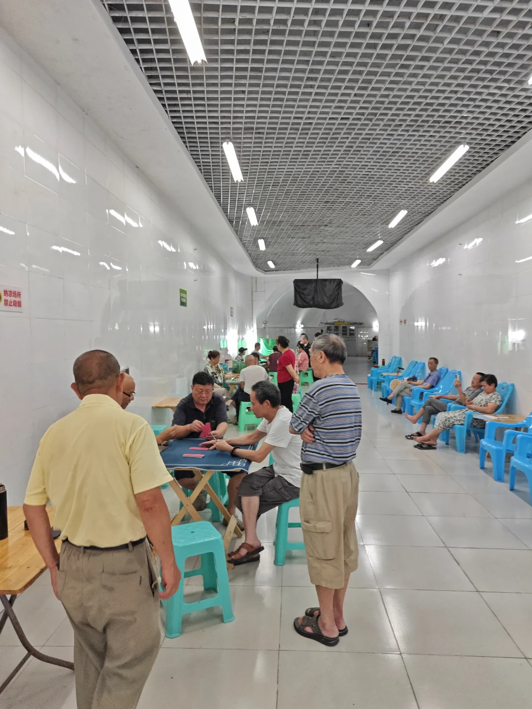 和平年代,人防工程当然就作为利民设施使用。所以现在的地铁和公路隧道很多也利用了这些防空洞,其他的比如防空洞火锅,酒窖,茶馆,展览馆等,数不胜数。但这也仅仅利用了少数防空洞,大部分仍然未开发。所以市政就选取了少量洞子作为酷暑纳凉点,也算是合理利用。我这次去的是江北五里店工校村附近的两个和大兴村三钢厂以前的两个,其中各有一个开放,另外各有一个没开且脏乱,堆了很多垃圾。开放的两个洞子里面有水有电,长安厂那个还有管理员,里面有纸杯和防暑药品,不过烧水机只能烧开水,没有直饮水。很多附近老年人在里面打牌下棋聊天,不亦乐乎,墙上还挂着图书阅览处的牌子,但一本书都没有,只有打麻将斗地主最吸引人。