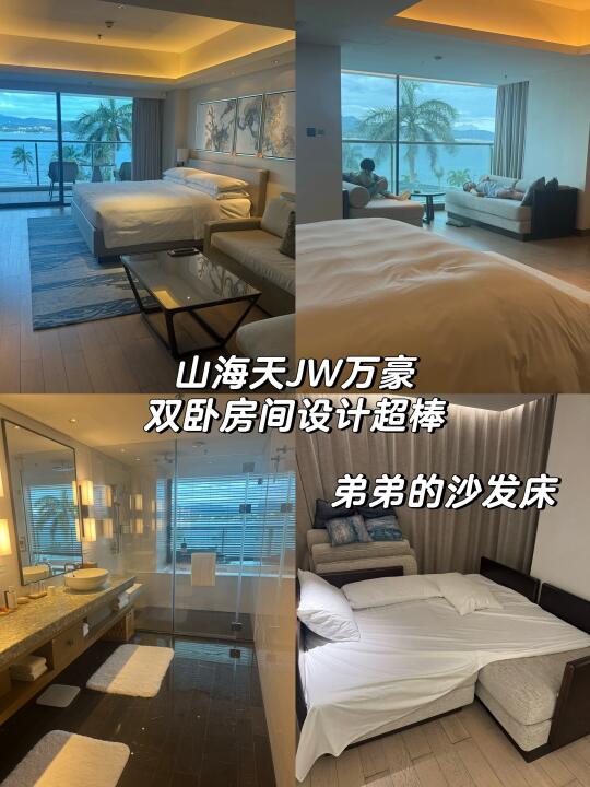 ⭐️山海天JW万豪是这趟旅程蕞满意的:700每晚,免费升级到了双卧海景家庭套房,房间面积108平,非常舒适。