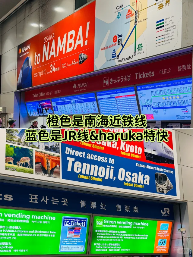 日本大阪关西国际机场如何入境?复杂交通怎么乘坐?这篇笔记给大家讲明白 - 🎫出发前准备:(图2) ❶登录vjw平台,注册信息,填写完毕生成QRCode,截图保存 ⚠️如果不知道如何填写去我主页🔍VJW即可找到《手把手教你填写VJW》 ❷租WiFi 一定要选择信号稳定、流量够且可以上外网(使用谷歌地图),不然很容易迷路!这几次和朋友来日本租的是漫游超人随身WiFi,它可以多人共享,同时连接多个设备,非常稳定,流量也是无上限,价格人均后相当划算(见图3-4) - 🛃入境:图5 ❶下飞机漫游超人就可以开机输密码联网了 ❷跟着“到着”指示牌走 落地T1航站楼需要搭乘一段小火车 ❸入境审查🛃 出示护照、扫描QRCode、录指纹 ❹领取行李 ❺自助申报流程 机器可切中文,扫描护照,根据出现的字母去指定区域,就完成入境了 - 🚇大阪关西机场交通:图67 入境后抬头找【铁道】的指示牌,电梯上二楼,看到一个写着2F|E的门出击,过走廊即可到达关西机场的交通枢纽 - 🚇大阪地铁:图8 ✅左手边是买票的地方,右手边是车站入口 ✅橙色是南海近铁线,蓝色是JR线&haruka特快 - ❓如何选择呢 ➡️大阪、天王寺、京都站推荐JR线 特别是直接去京都的可以选择JR线的haruka特快,80分钟就到京都 ➡️心斋桥、和歌山方向选择南海近铁线 👍一个简单方法,就是打卡谷歌🔍目的地,就会给你推荐合适的线路(如图9) 再次强调,一定要选择可以上外网的套餐!不然日本这么复杂的交通真的容易迷路!之前开流量包就踩过坑,但是连这个漫游超人WiFi就可以用,这对自由行的太重要了。亲测在日本地铁里信号大部分情况都是5G,且稳定(图10) - 🌈推荐乘坐地铁方式: ❶日本西瓜卡(图11) 在手机上绑定&充值,方法见图 ❷如果你乘坐haruka特快的话,可以在各大平台提前购买(更便宜),凭借QRCode在机器上取票即可(图12) - 🌈关西旅游攻略手绘地图 图13-16 -