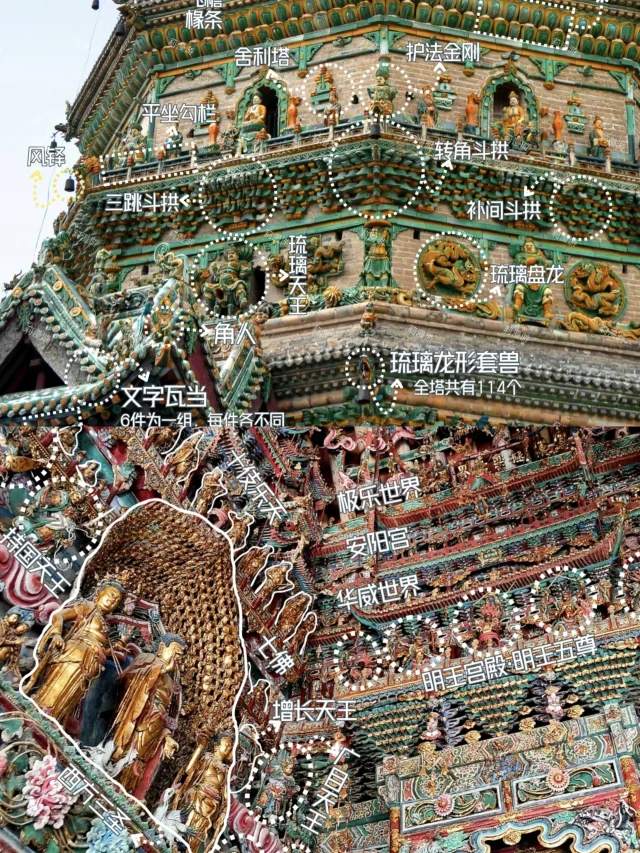 ① 世界蕞高的多彩琉璃塔📍飞虹塔,感受阳光下流光溢彩且细节爆炸的中国四大名塔之一