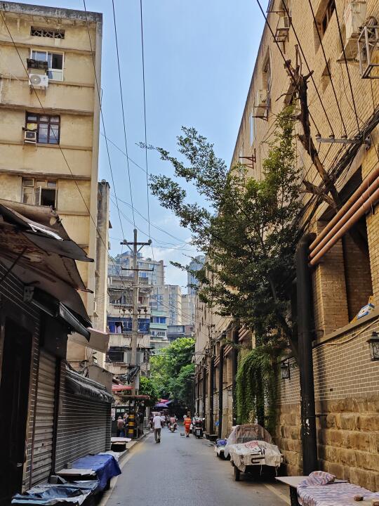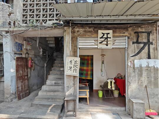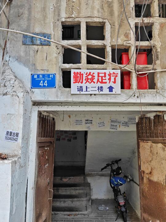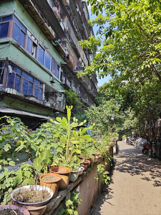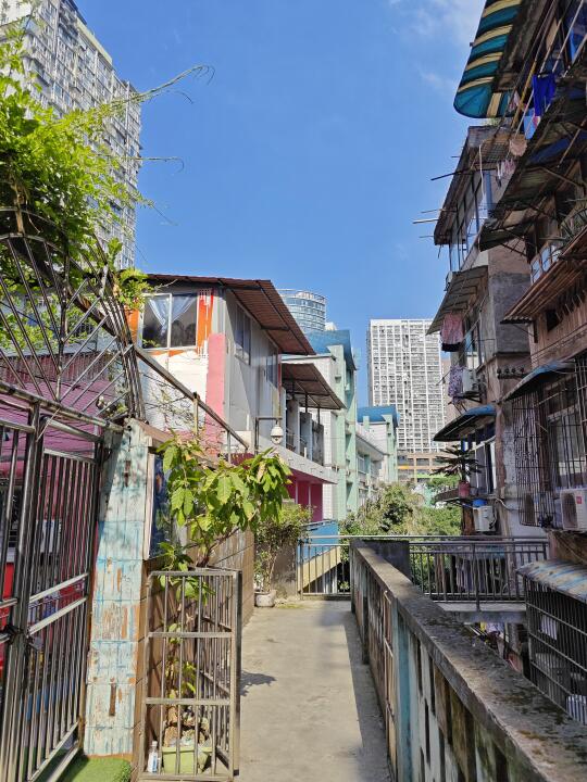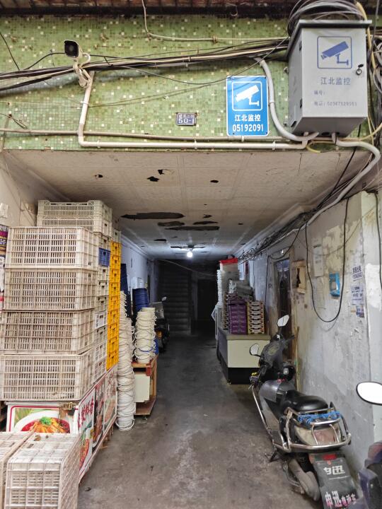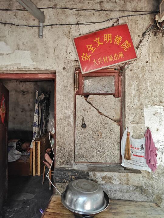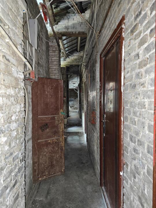 就在嘛嘛公寓一墙之隔的几栋1980年代旧家属楼的狭窄走廊里,我居然发现那里面还有居民自己搭建的砖木结构棚户,出租给外来打工人。那里面非常阴暗破旧,居然也住着人,可见野水沟也是寸土寸金之地,有点像九龙城寨的居住环境了。